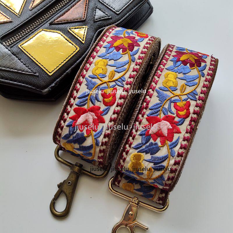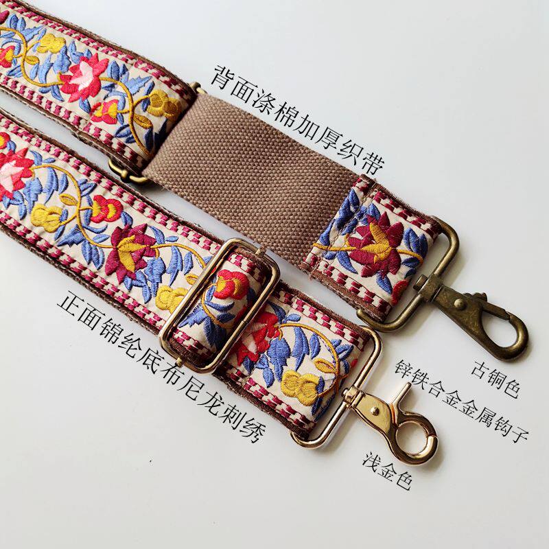 顏色:棕色滌棉織帶彩色系刺繡圖案 淺金色古銅色五金配件