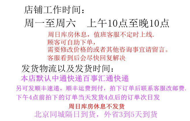 注意:包郵不包括新疆西藏青海甘肅廣西海南貴州寧夏云南以及港澳臺等偏遠地區 偏遠地區請按照實際運費付款就可以了。