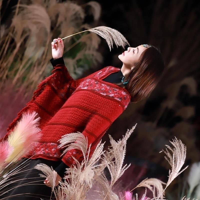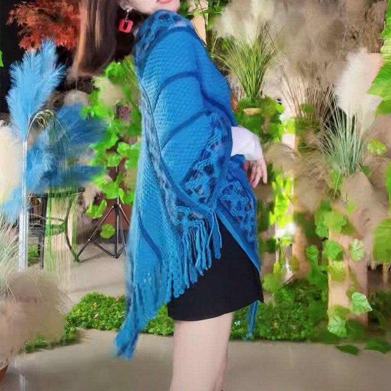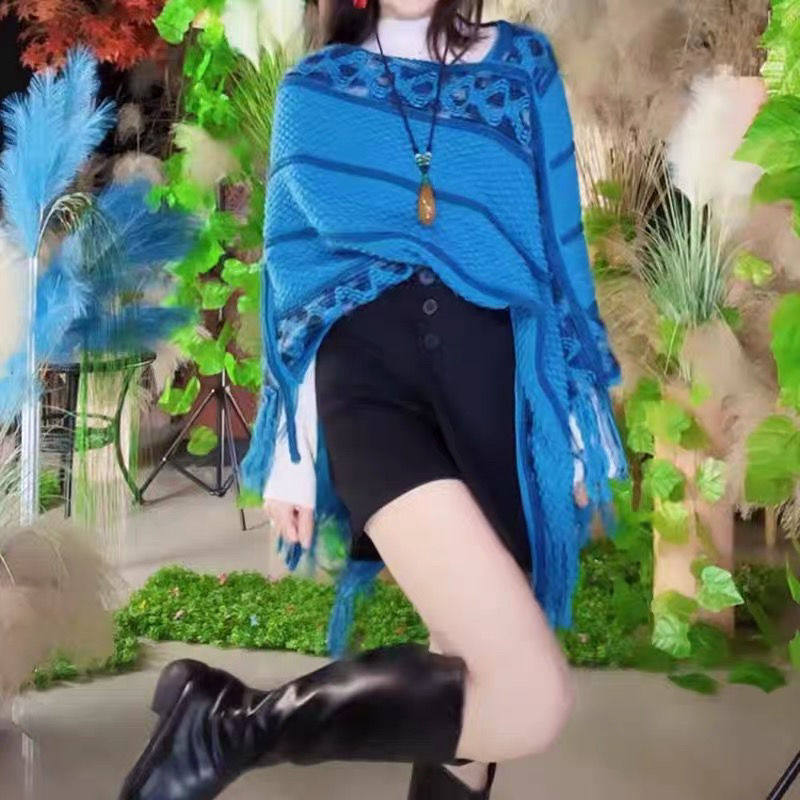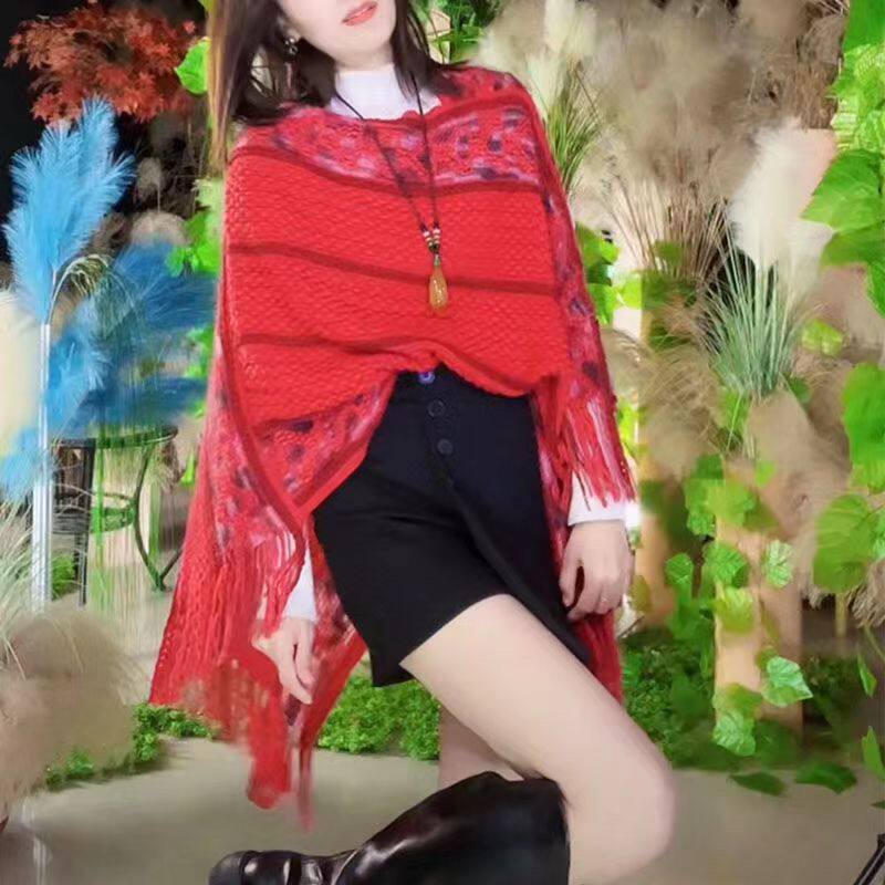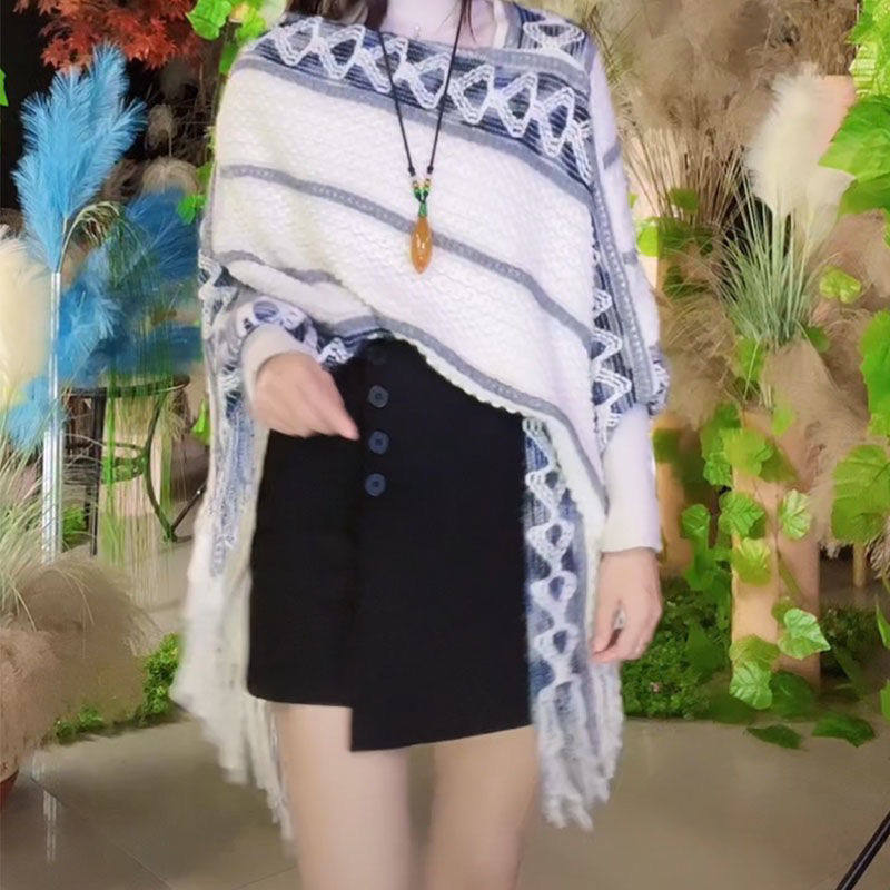 春季新款流蘇套頭披肩民族風旅游拍照時尚針織氣質網紅斗篷披風