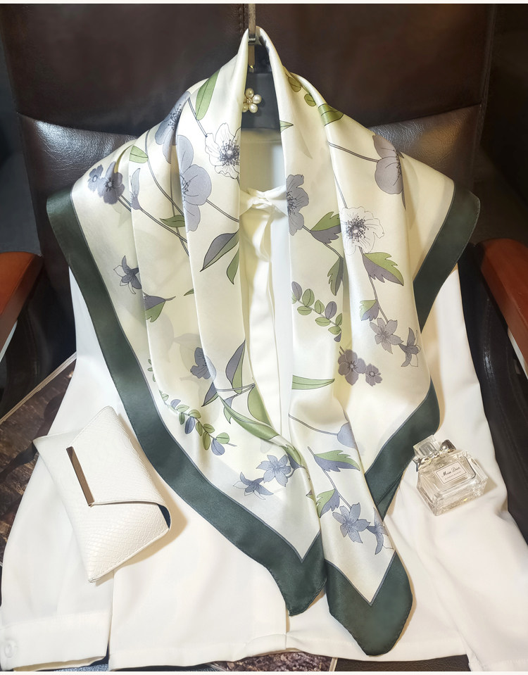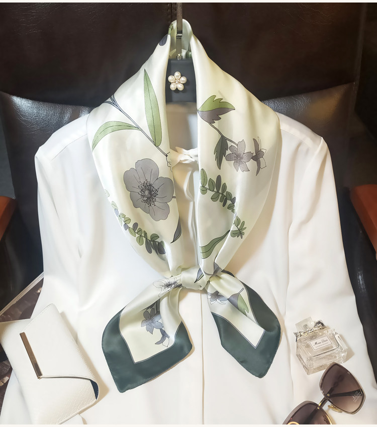 【尺寸】:90cm*90cm【面料成分】:100%桑蠶絲【面料形態】:真絲緞面 (厚度14姆米)【圍巾特色】:印花【包裝方式】:送禮盒