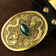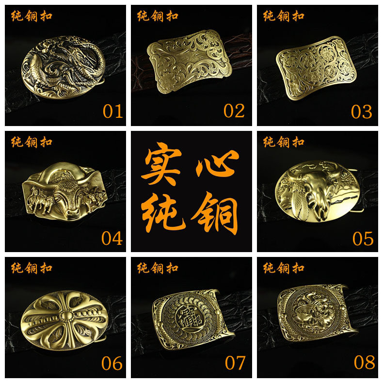 浮雕銅扣皮帶頭層牛皮男真皮復古皮帶純銅龍平滑扣百搭青年潮腰帶