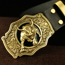 牛頭皮帶男潮人個性整張牛皮平滑扣青年牛仔褲真皮銅腰帶男休閑