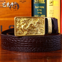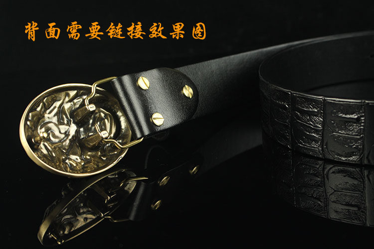 皇耀之玉銅扣手工皮帶男頭層牛皮腰帶男中國風皮帶鱷魚紋平滑扣