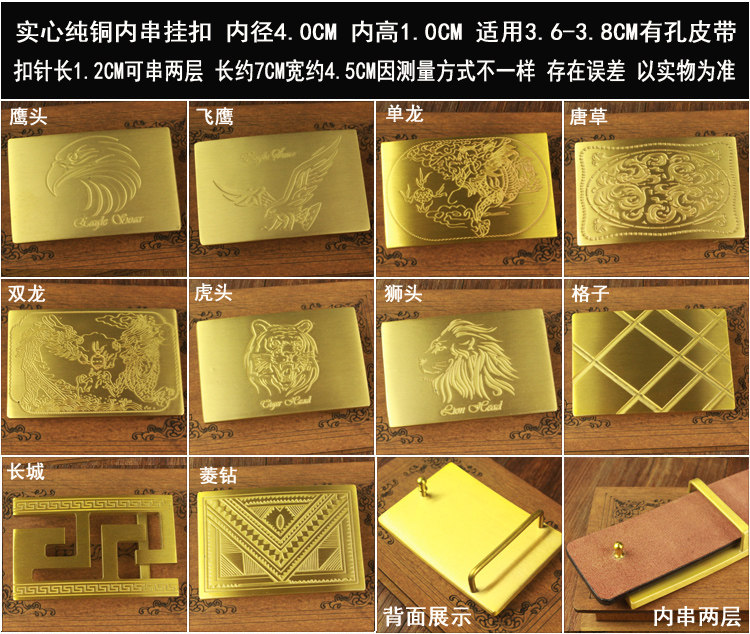 屬龍牛鷹馬黃銅板雕花男士純銅銅皮帶扣板扣全銅腰帶頭平滑扣頭