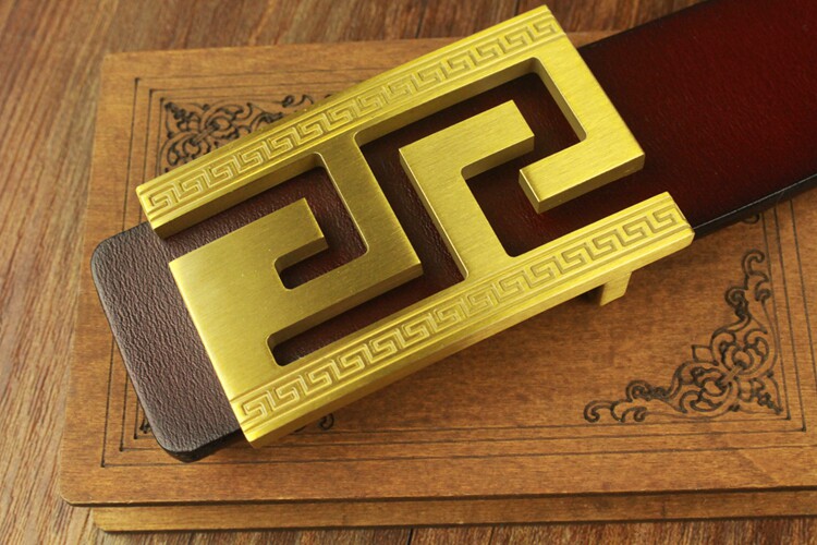 韓青年純銅平滑扣皮帶男士真皮復古腰帶龍頭扣商務休閑純牛皮褲帶