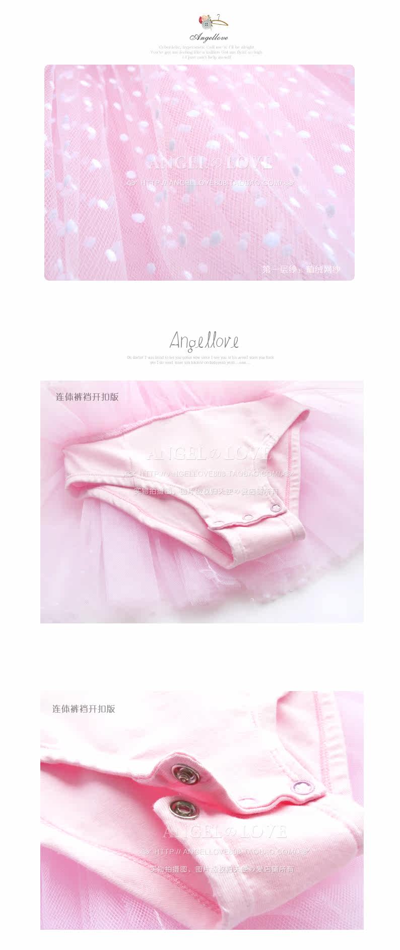 版型:彈力緊身帶紗裙連體服,連體褲襠可開扣,紗裙不可拆卸。