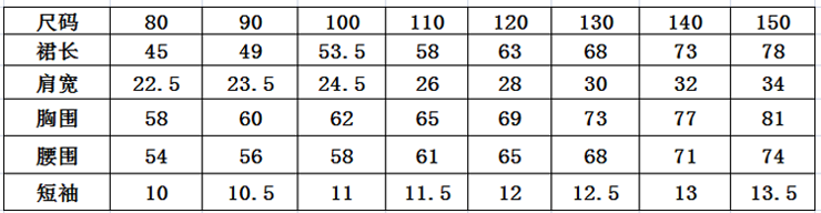 建議大家按身高選號碼,裙子要穿著合身才美麗。個別喜歡寶貝穿著寬大的可以買大一號,體形偏胖的量一下胸圍跟腰圍,然后對照號碼表選號碼。由于每個人的量衣方法不同,相差1-3cm屬于正常范圍。