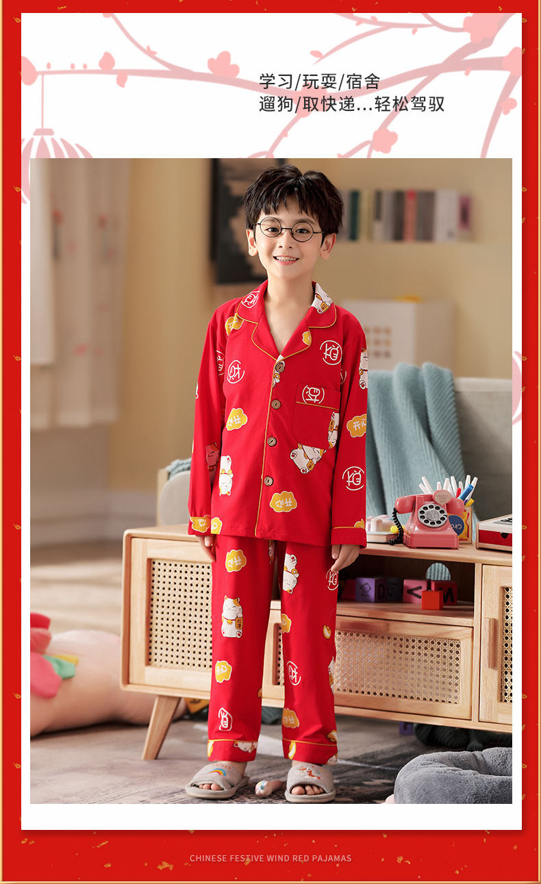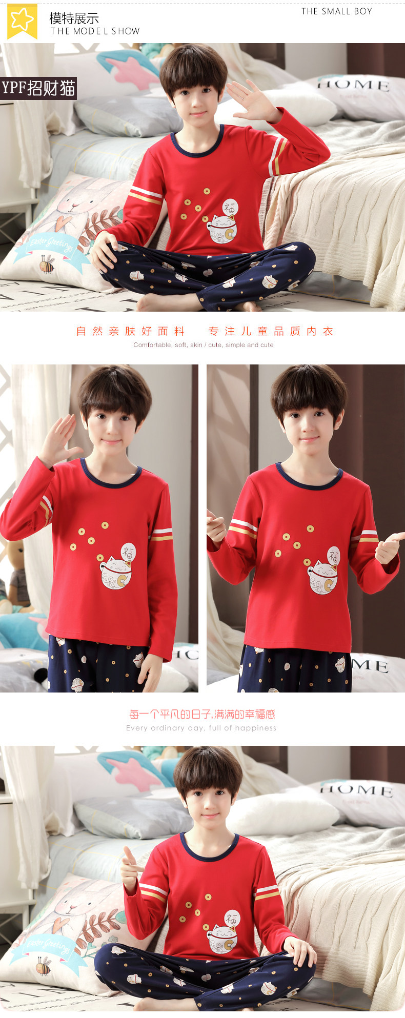 兒童睡衣小男孩夏天純棉長袖中大男童薄款春秋季家居空調服套裝13