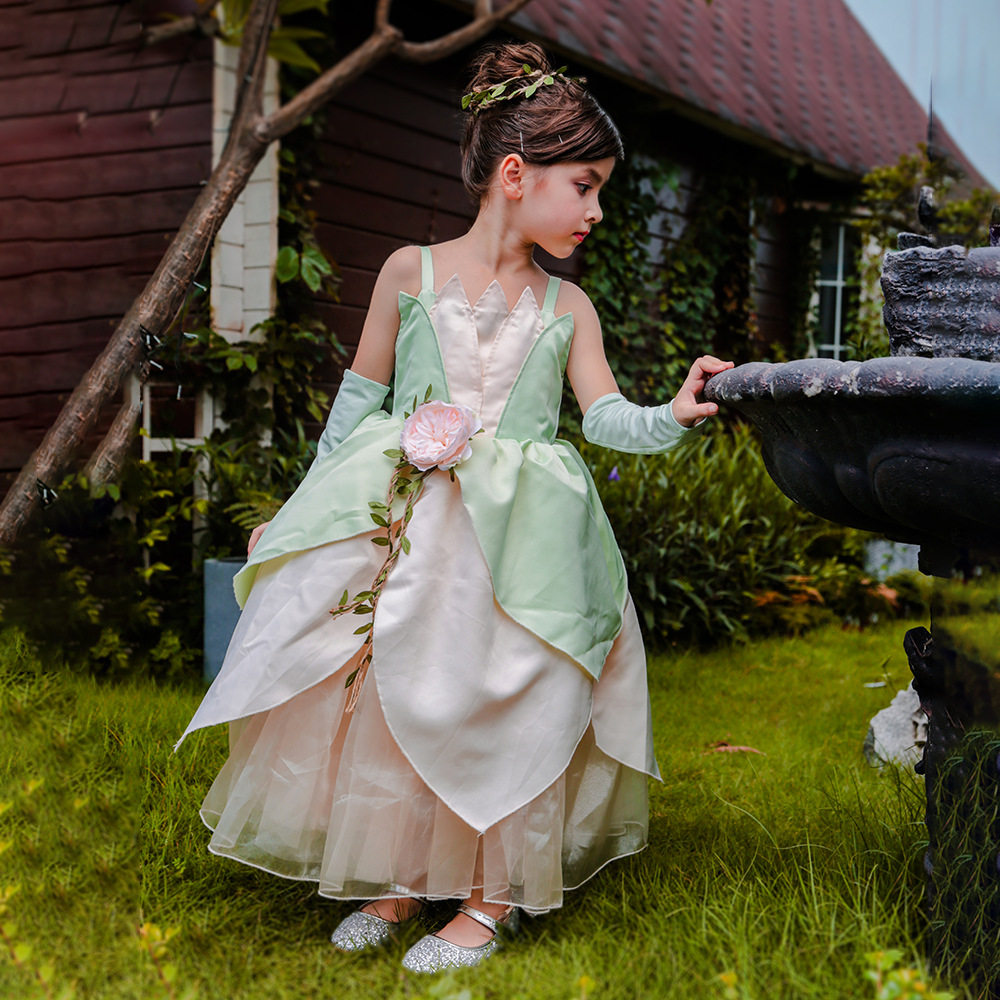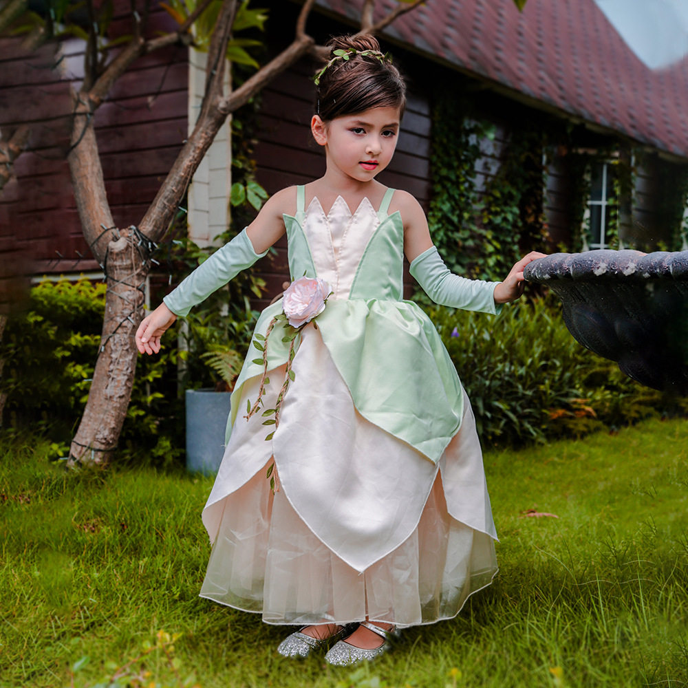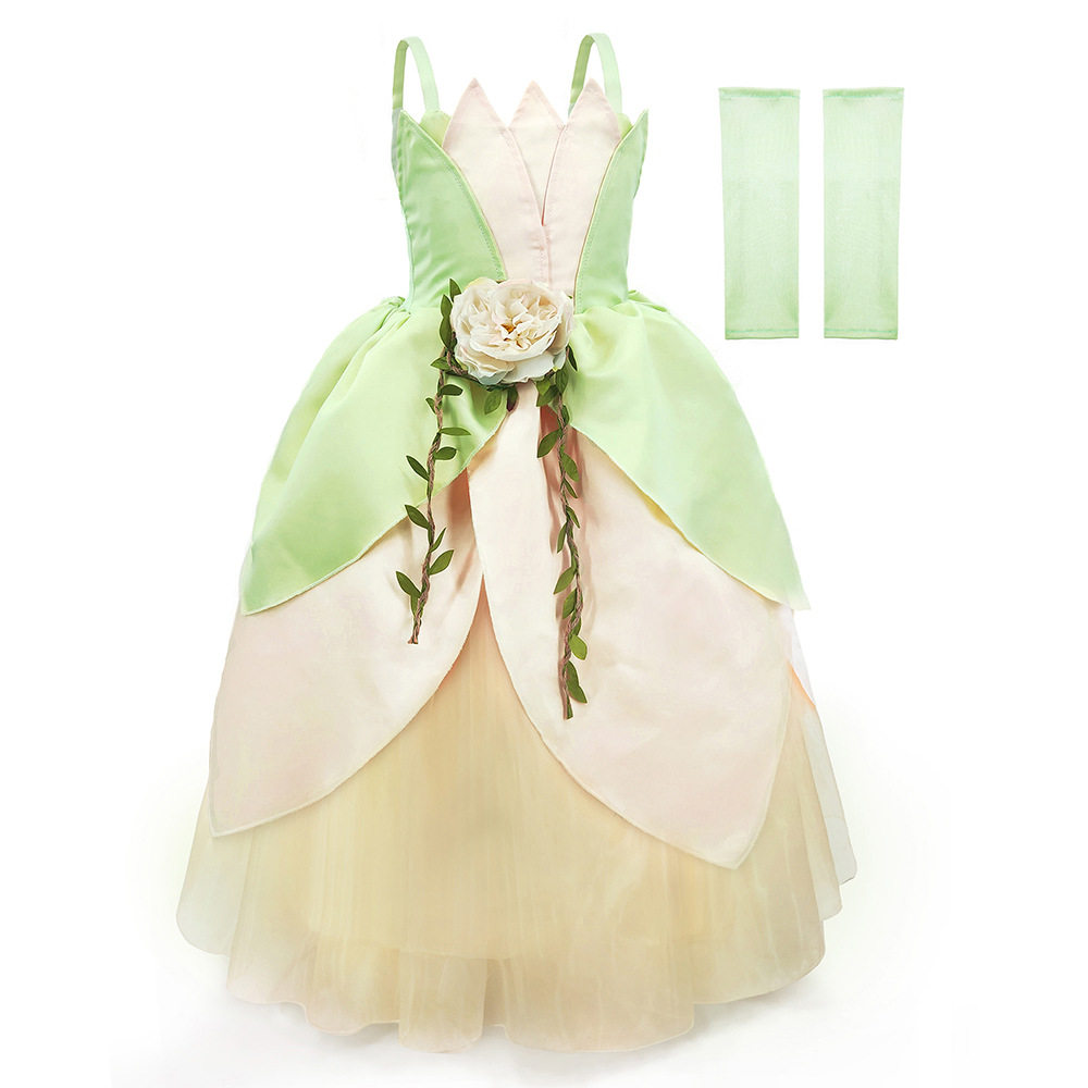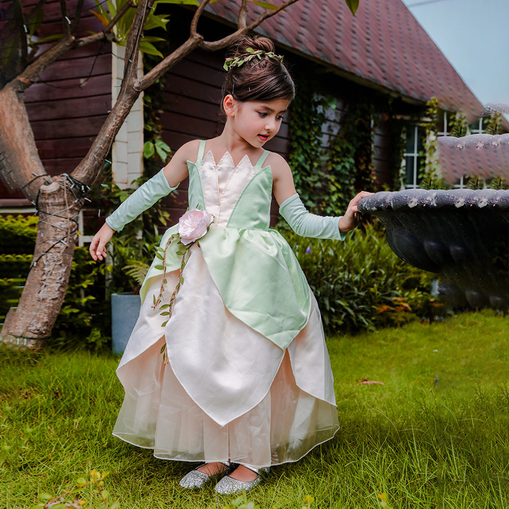 款式:吊帶禮服裙裙長:長款至腳踝顏色:綠色穿著場合:PARTY,節日演出,拍照寫真等主面料:牛奶絲(95%滌+5%氨綸)+冰沙(100%滌綸)+網紗(100%滌綸)+緞布(100%滌綸)里布:100%滌綸上衣特點1.上衣:前片葉子形狀造型,后片彈力布2.彈力牛奶絲袖套,舒適3.腰部:仿真花和葉子裝飾腰間,后腰部加松緊下裙特點:1.第一層綠色葉子形狀2.第二層香檳葉子形狀3.第三層香檳紗4.第四,五層香檳網5.第六層香檳內襯