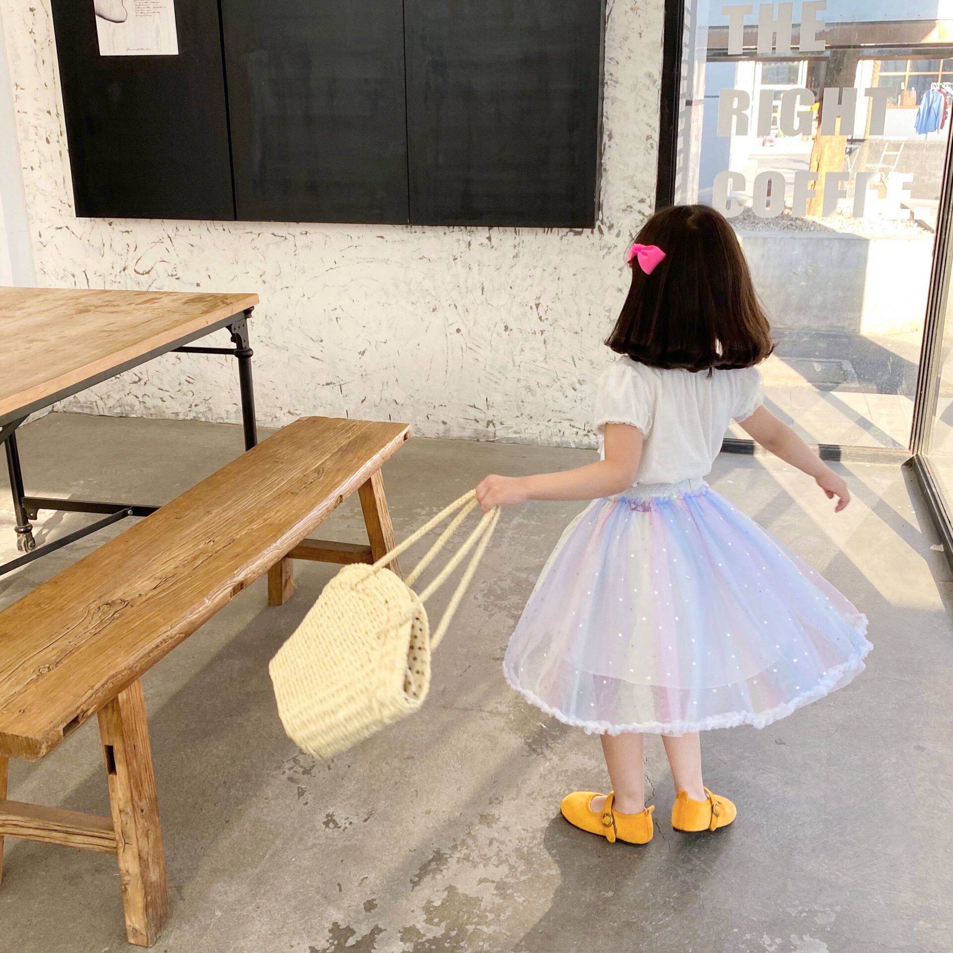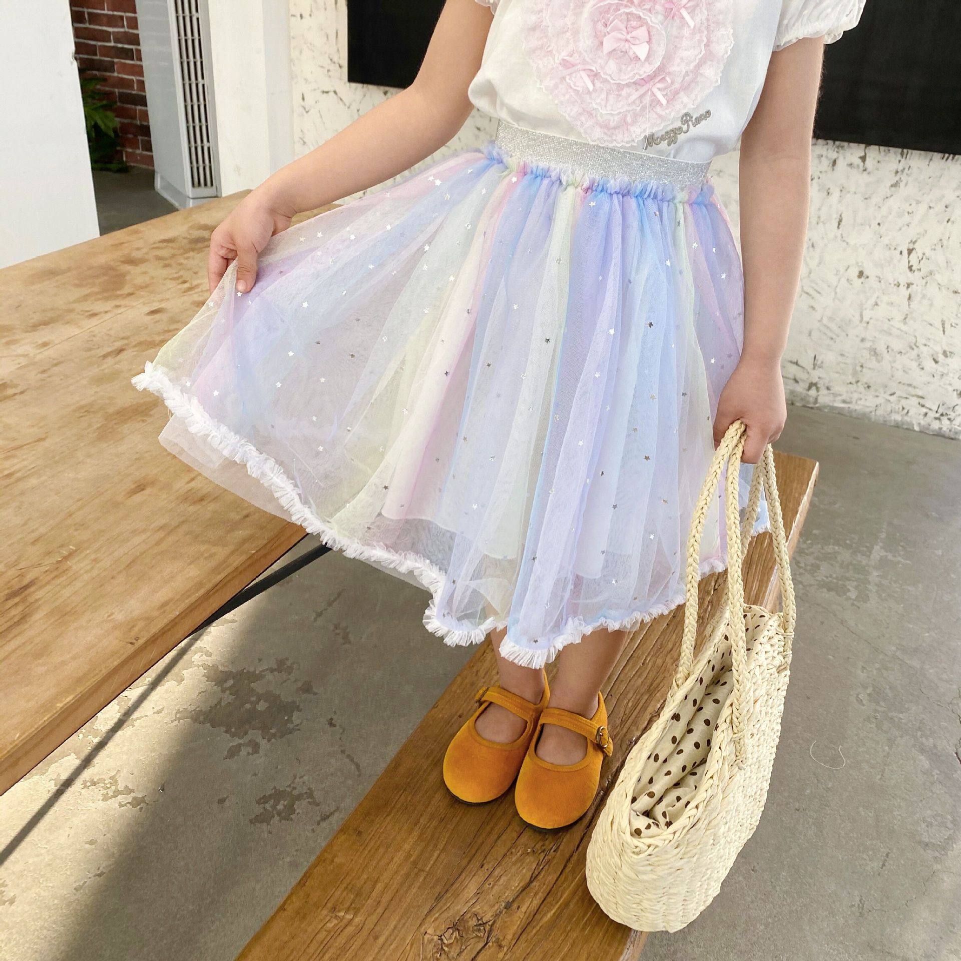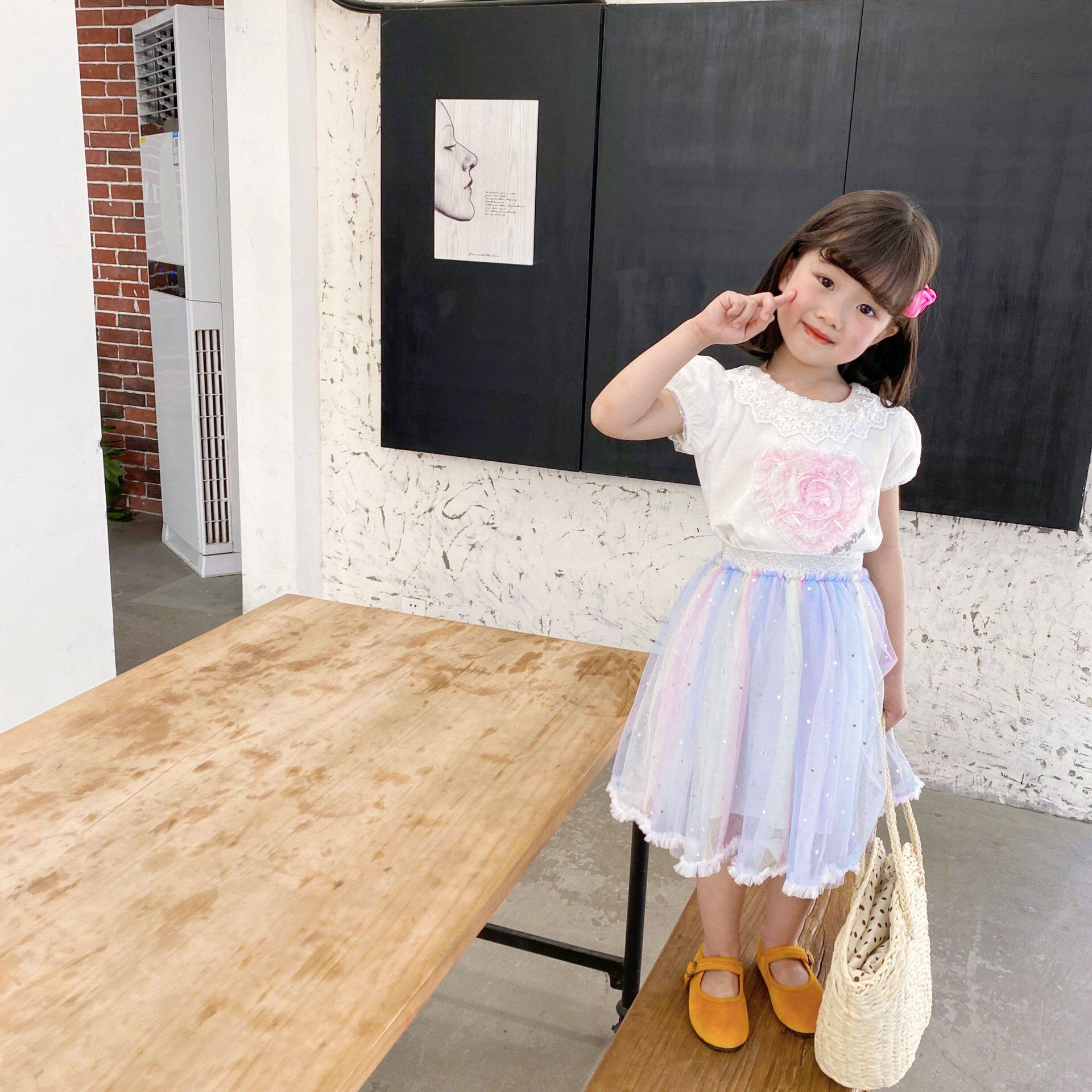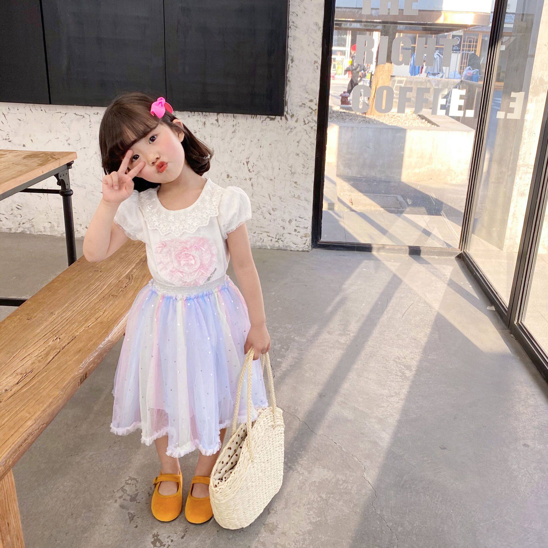 蕾絲花邊領子 盡顯精致 搭配彩虹漸變半裙 很好看喔