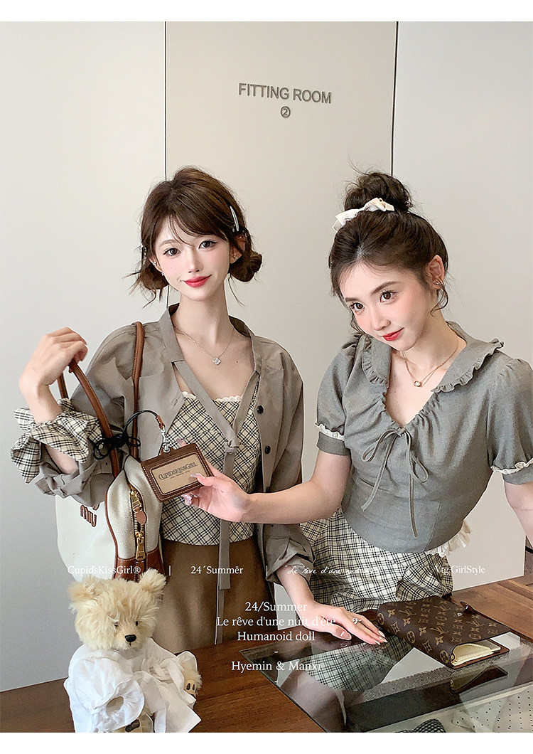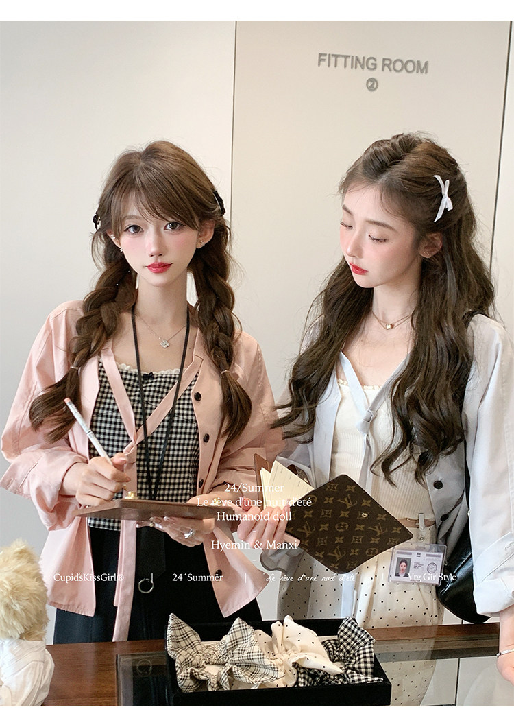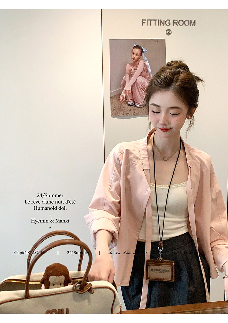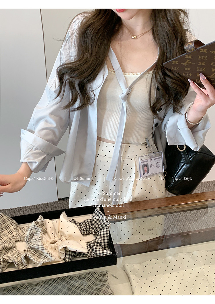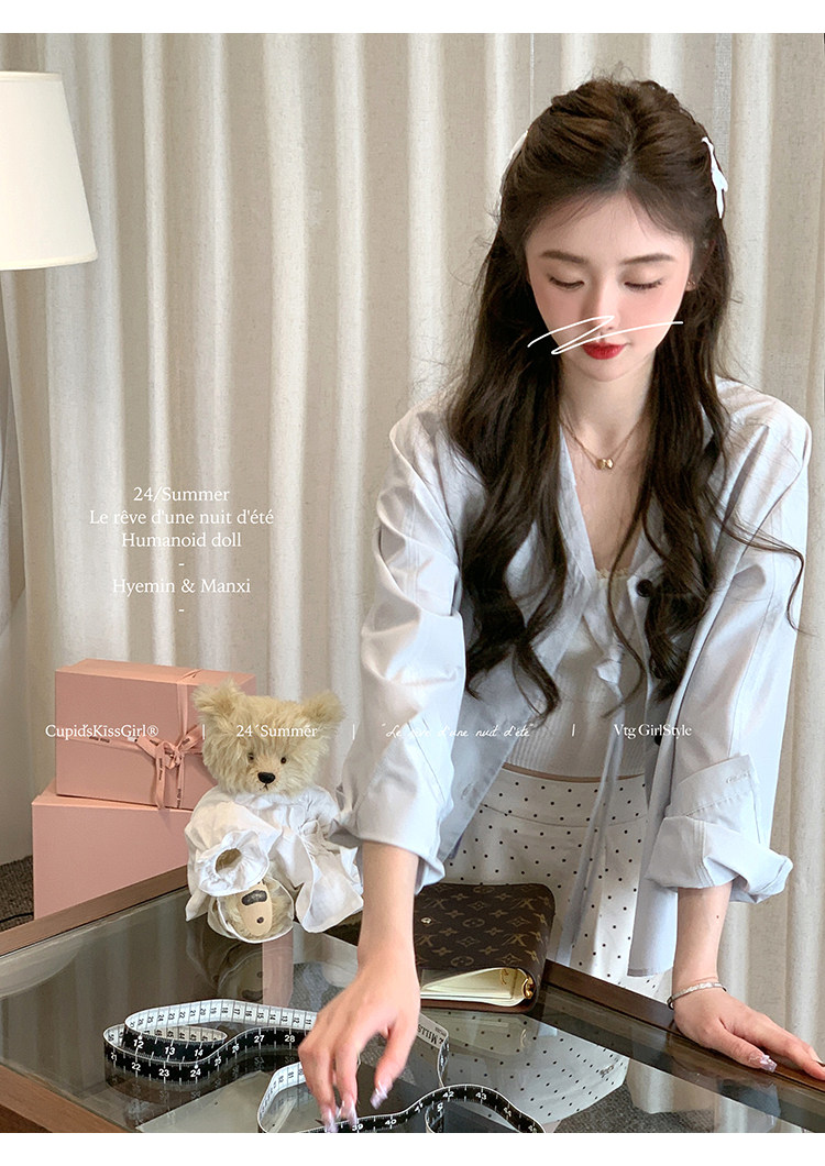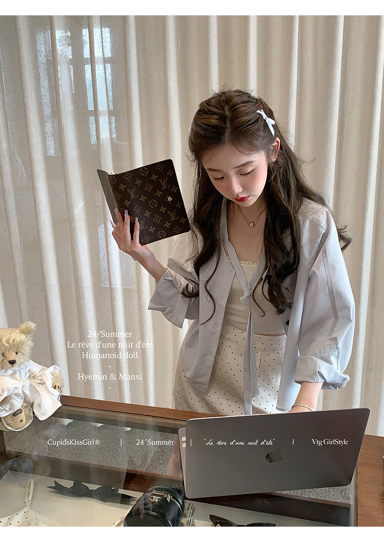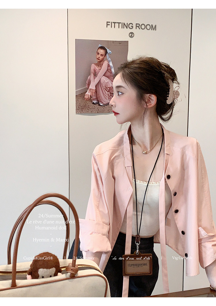 襯衫領口做了v領綁帶設計,這個帶子可以綁帶蝴蝶結