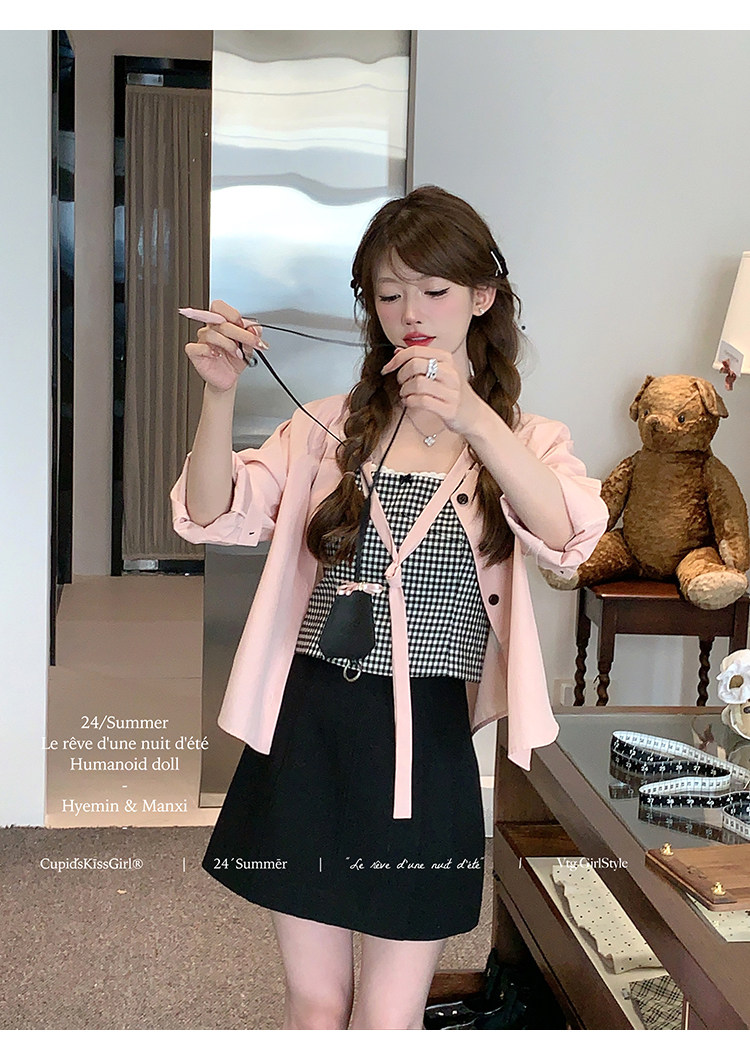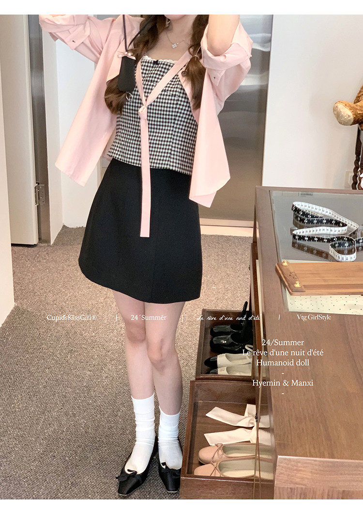 比如格紋的半裙去搭配粉色襯衫時