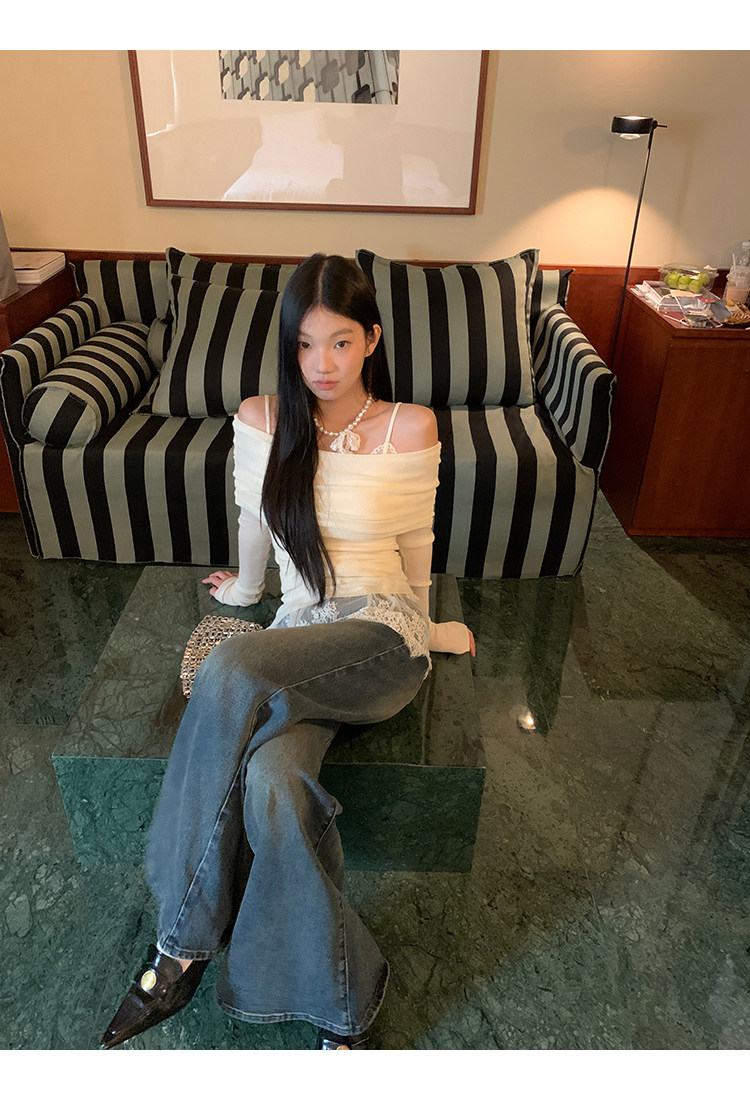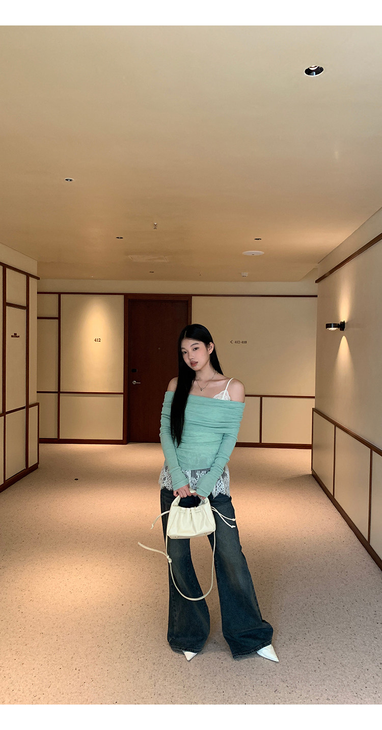 吊帶設計,恰到好處地展露鎖骨與肩頸線條,