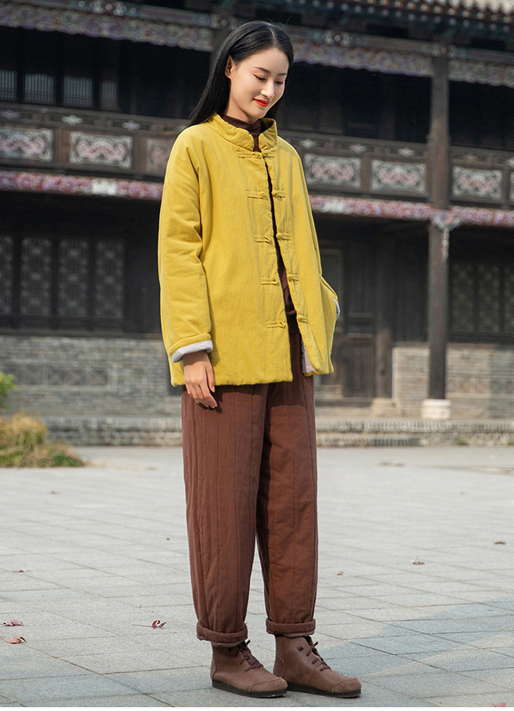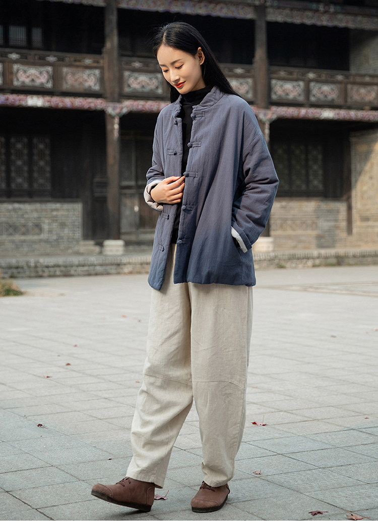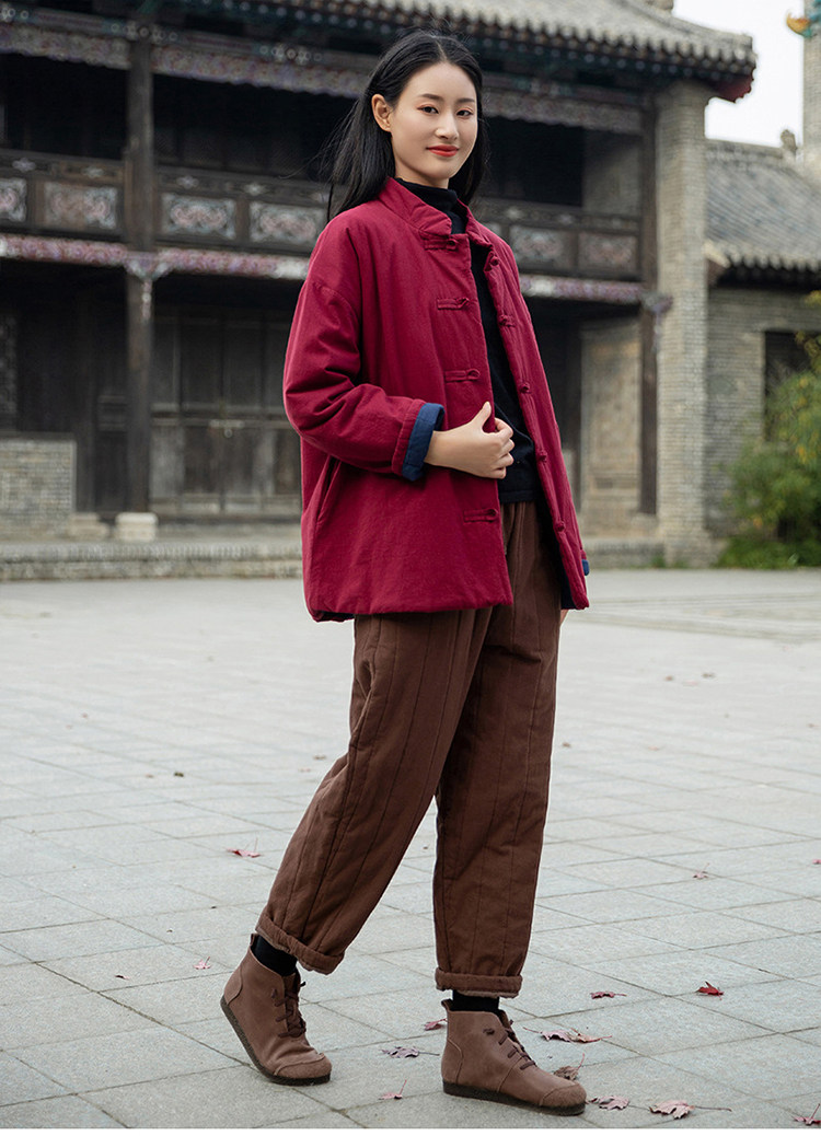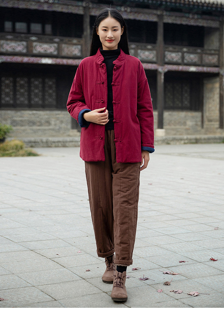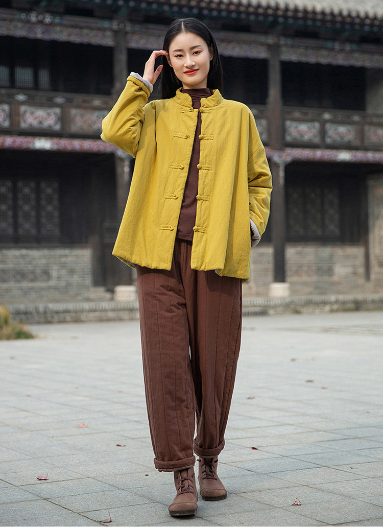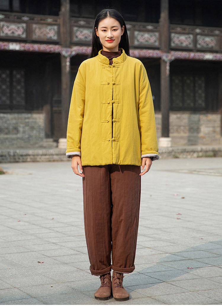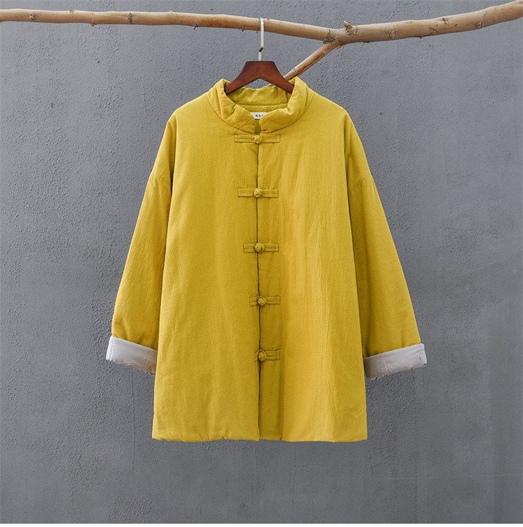 這款對襟加厚棉衣在以往工藝和版型的基礎上作了適當的調整寬松版型,男女同款哦外亞麻棉面料,內填充仿絲棉,給你帶來溫暖衣長70cm,肩寬58cm,胸圍126cm,下擺128cm,袖長51cm,袖口30cm
