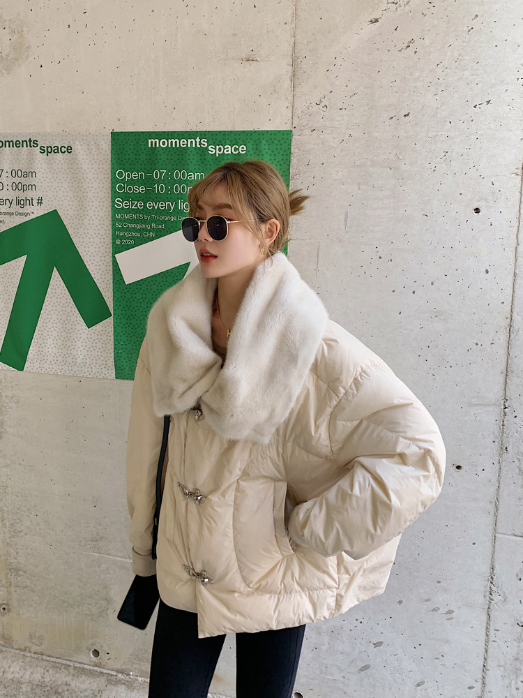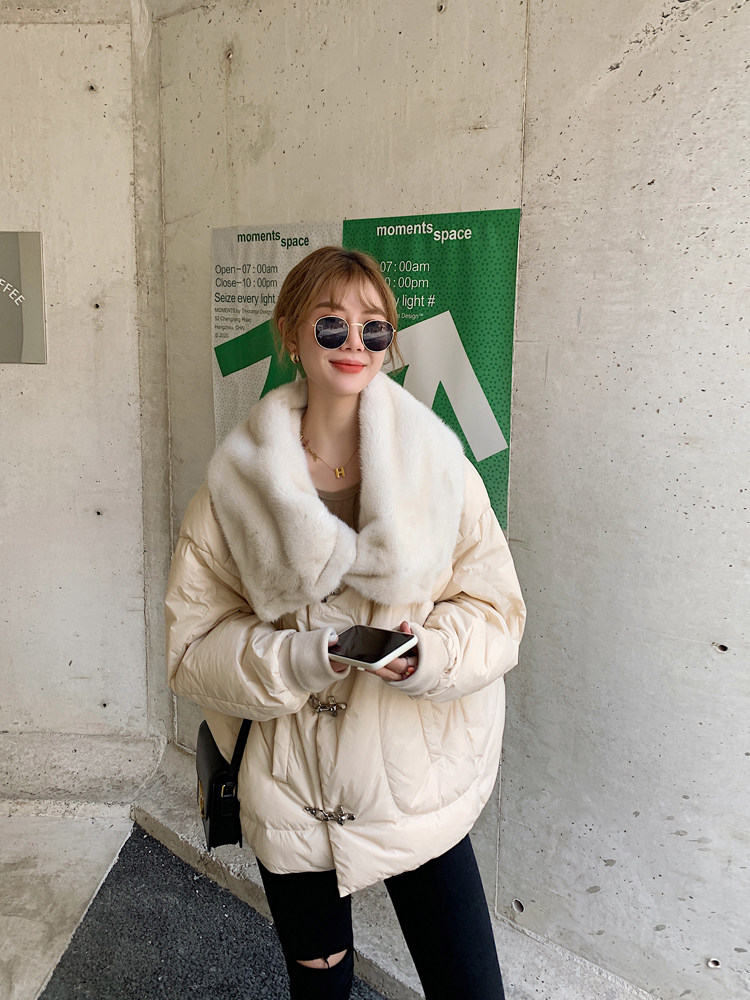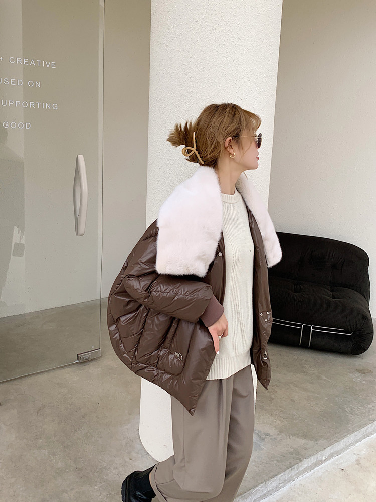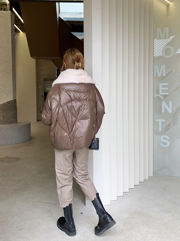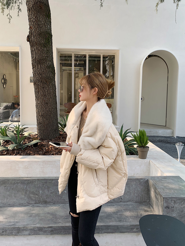 丹麥進口水貂毛大翻領+蝙蝠袖廓形外套