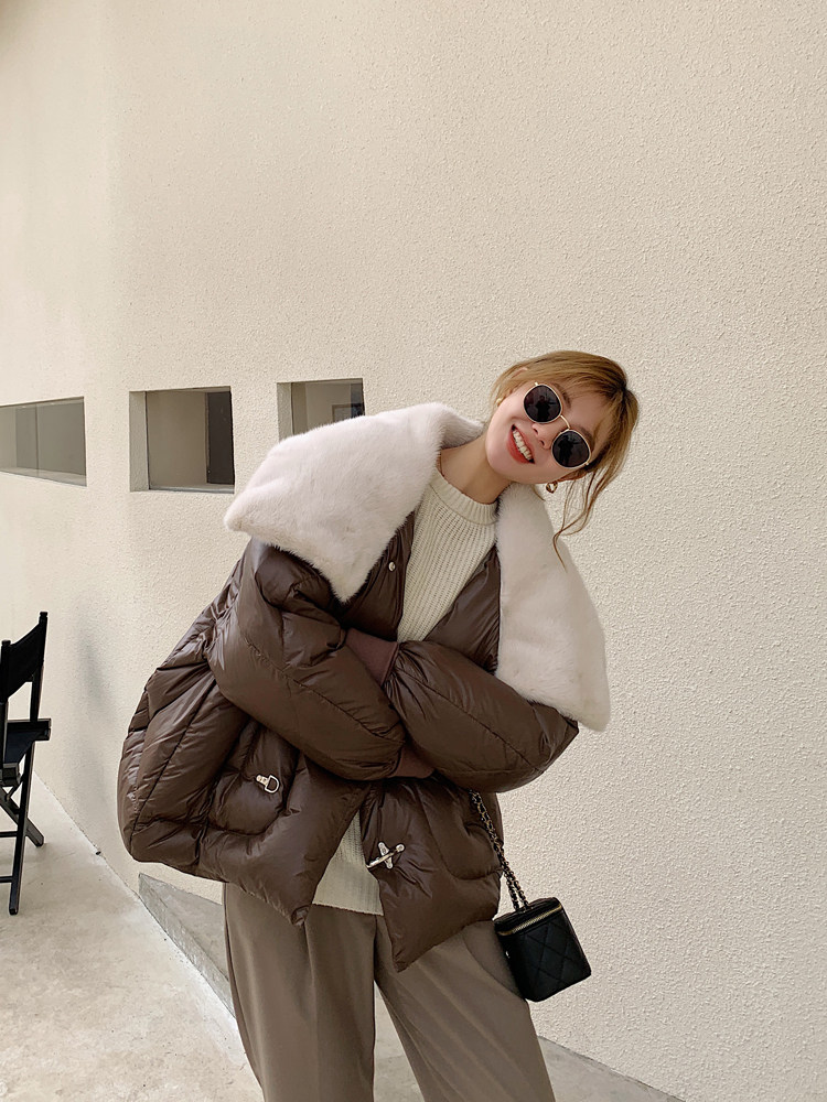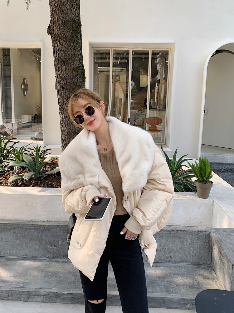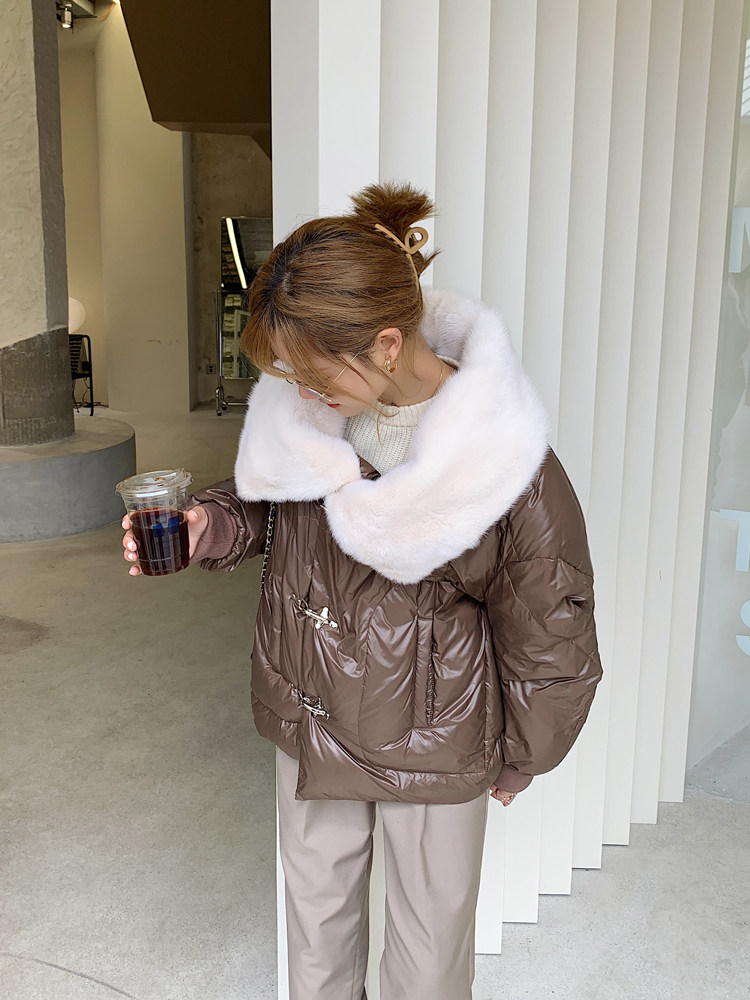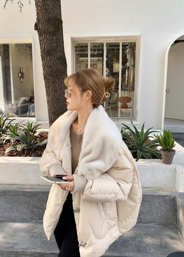水貂毛大翻領:飽滿又立體,用料shi足,