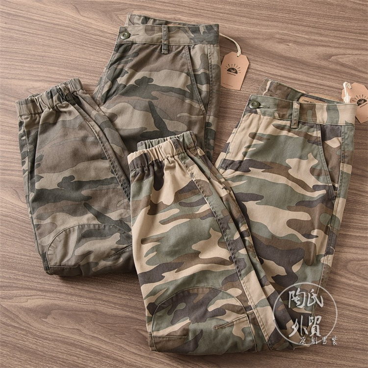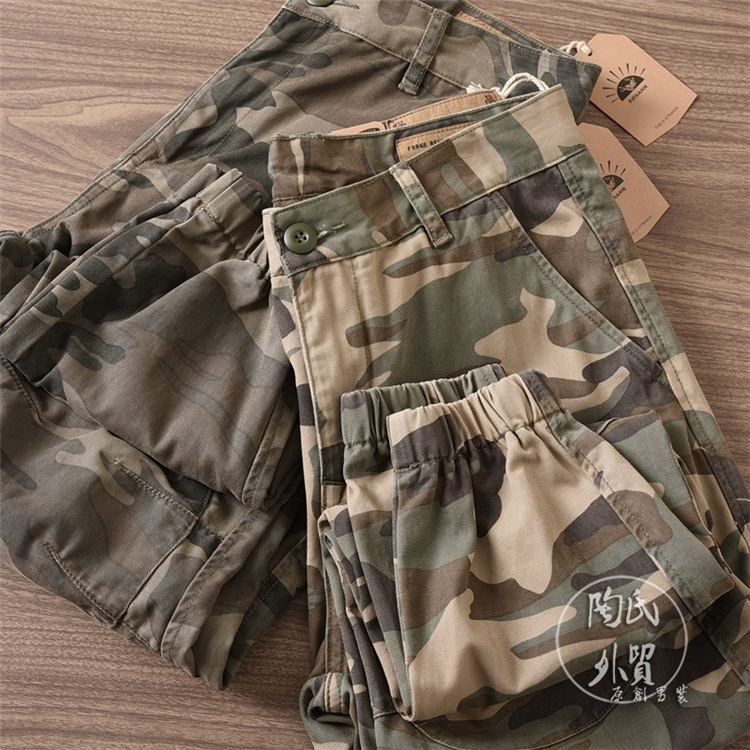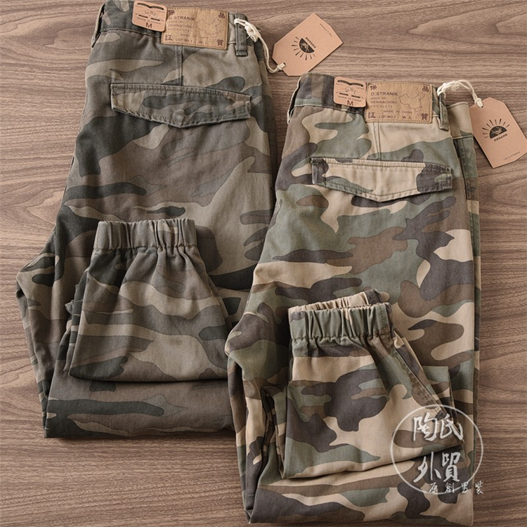 戶外迷彩復古洗水工裝褲
