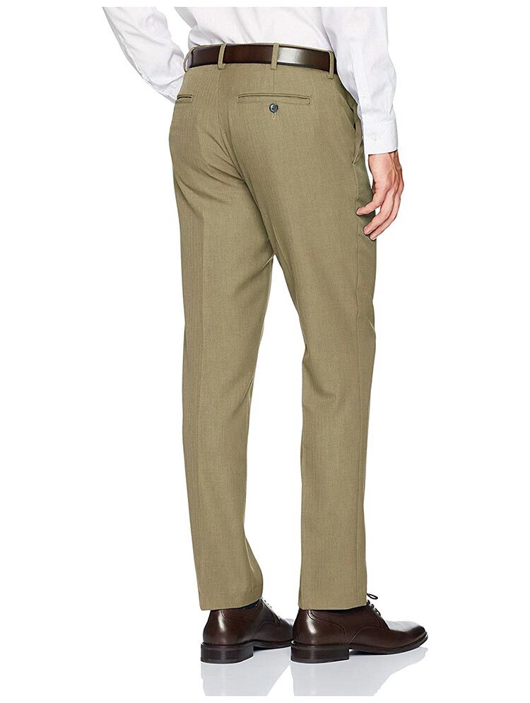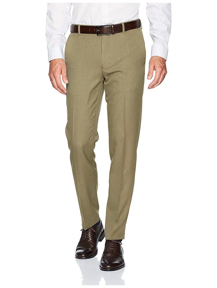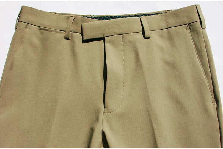 無褶修身小腳卡其色男西褲