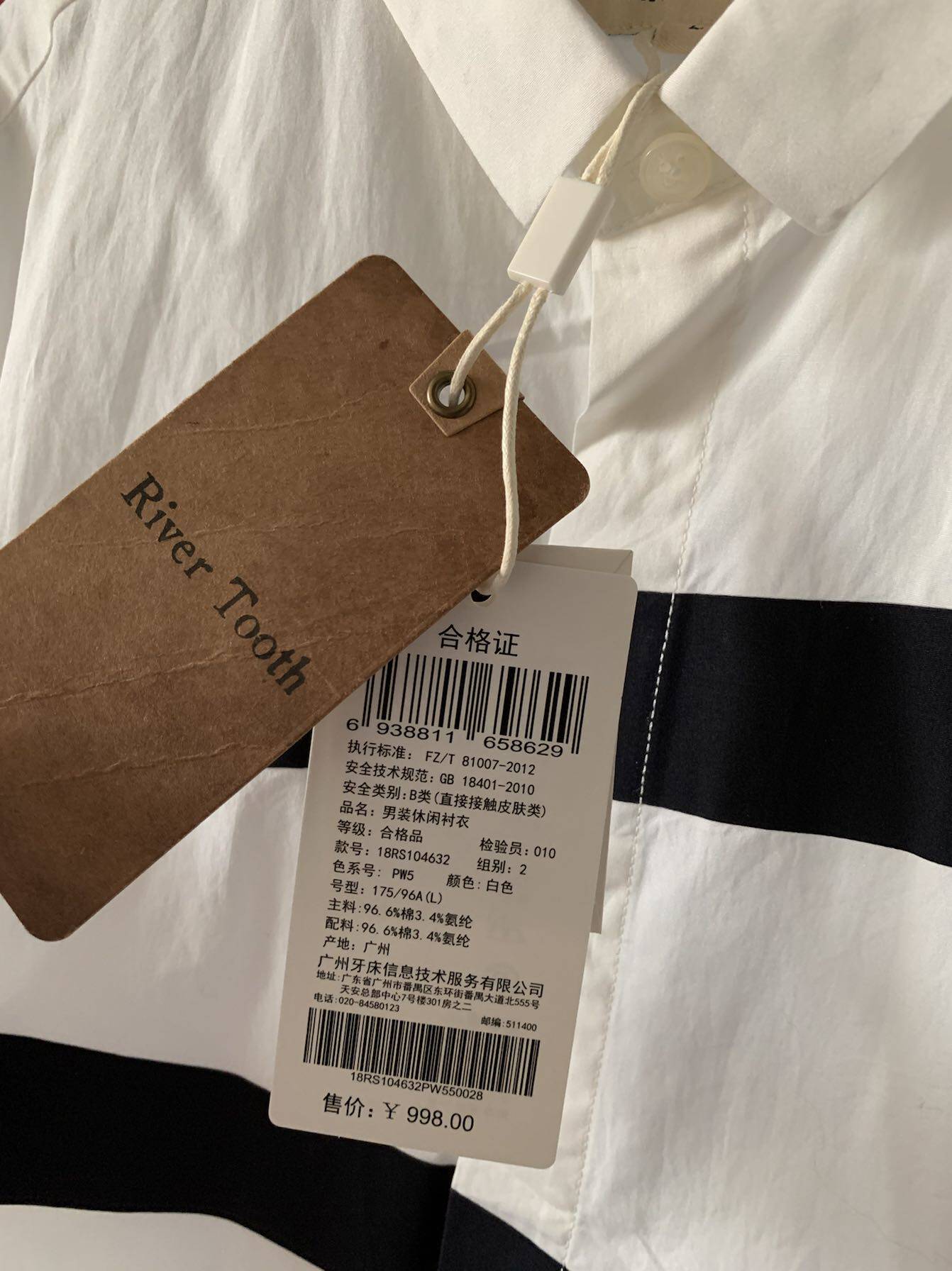 【river tooth 男裝】正品保證,放心購買,有吊牌。吊牌價998。現貨速發。【尺碼參考】(單位:厘米。手工測量,可能存在1-3厘米誤差)165/88A(S),肩寬42,胸圍96,衣長74。170/92A(M),肩寬43,胸圍100,衣長75。175/96A(L),肩寬44,胸圍104,衣長76。180/100A(XL),肩寬45,胸圍108,衣長77。【特別提示】實物拍攝,因光線問題存在一點色差,色差不大。【白色細節圖如下】