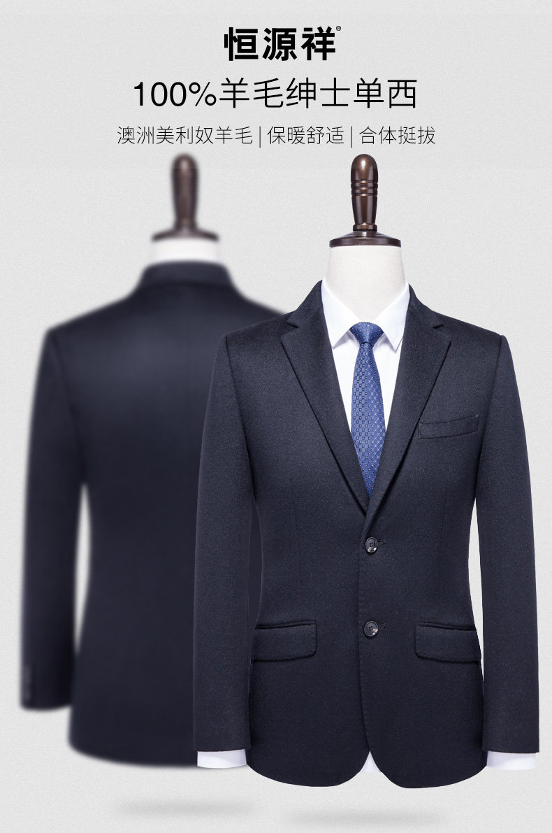 恒源祥羊毛西服男外套冬季新款毛料毛呢西服休閑純色單西小西裝男 100%羊毛 柔軟舒適 不易起球不易粘灰 上身有型 2019秋季冬季新款 純羊毛毛呢呢子外套 恒源祥官方正品