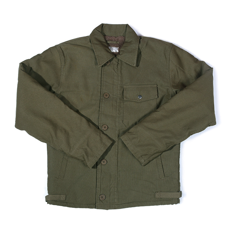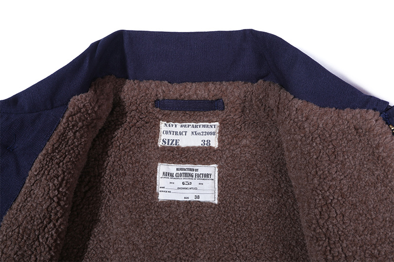 【物品描述】:A-2海軍夾克,表層采用加厚JUNGLE CROSS純棉織羅緞面料,這是N-1系列的特種面料,有輕微防潑水機能,內里采用定制羊羔毛(