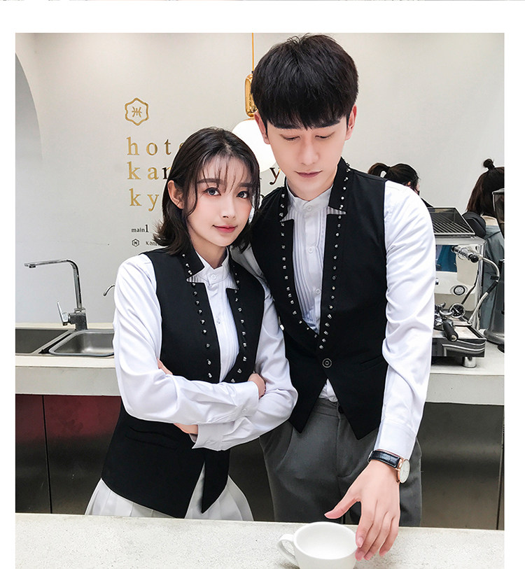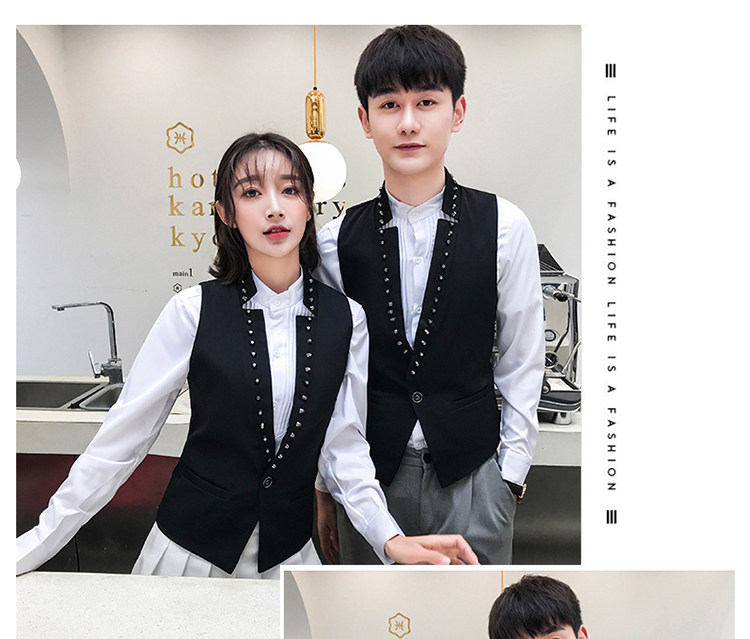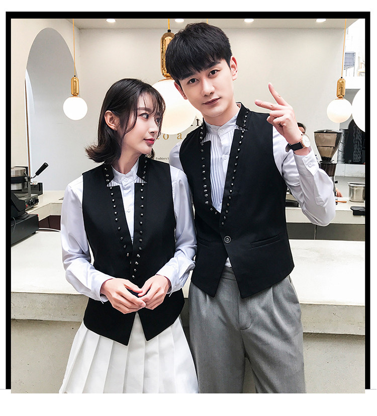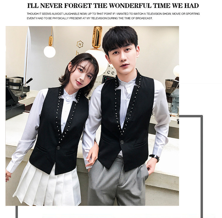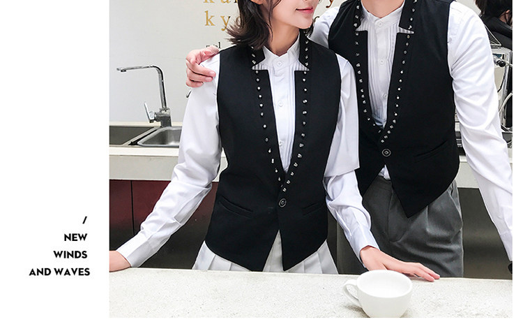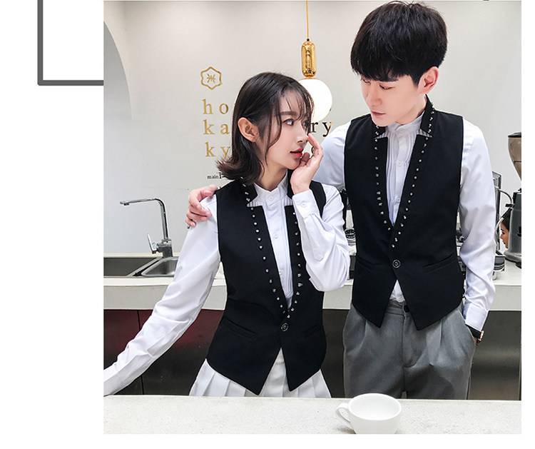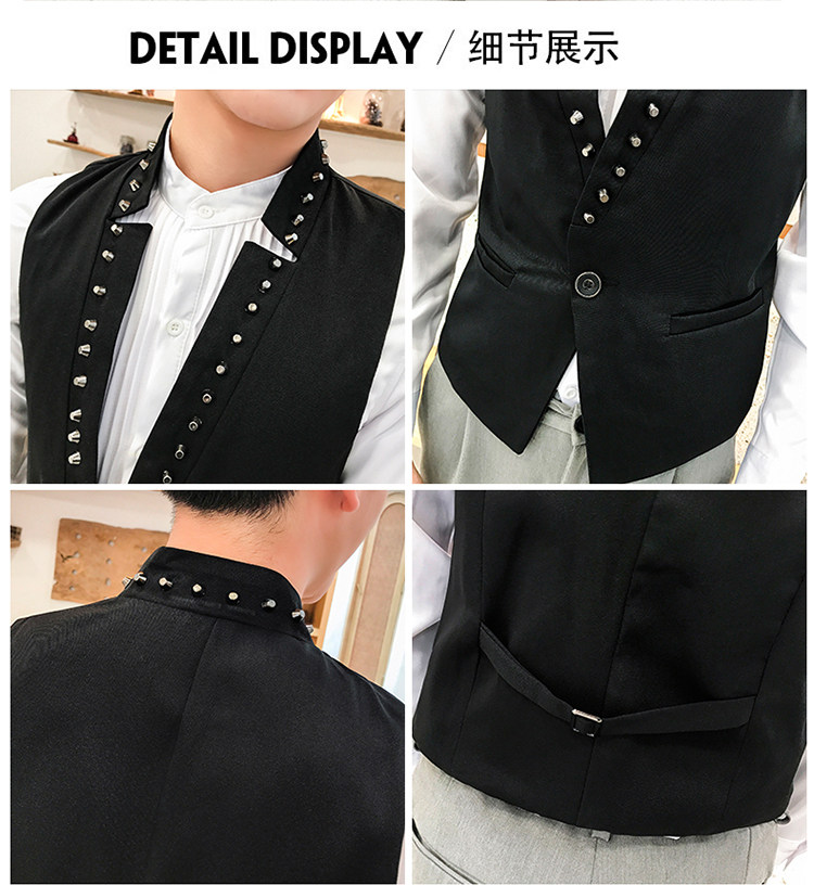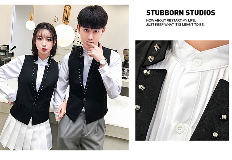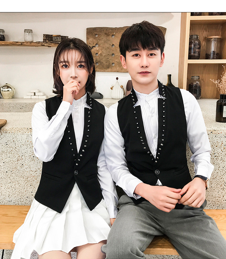 鉚釘裝飾立領情侶一粒扣短款馬甲酒吧KTV男女馬甲工作服