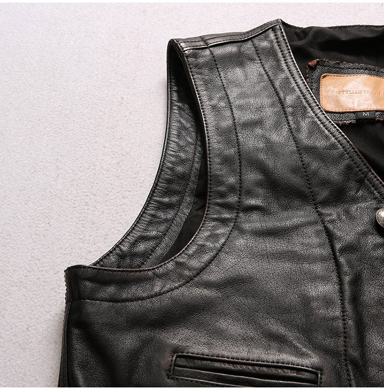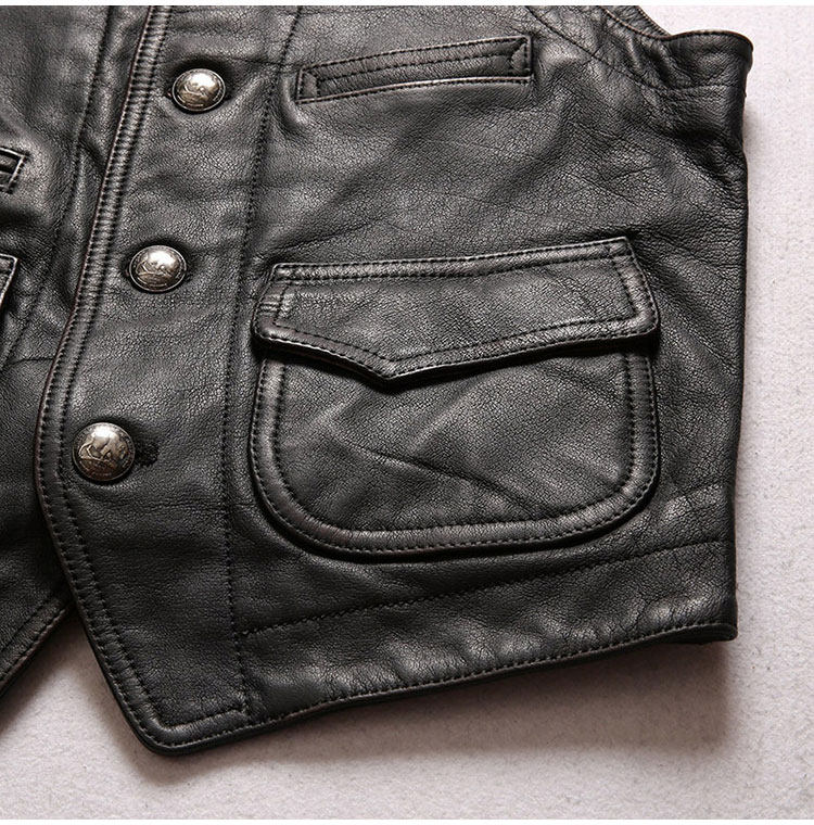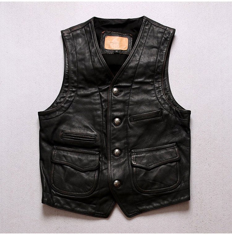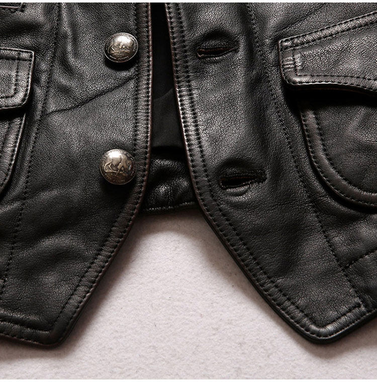 阿美咔嘰做舊頭層牛皮馬甲,棕黑色做舊整張北美進口水牛皮,美國進口錢幣圖形的五金紐扣,百搭款式搭配牛仔,休閑,襯衫,機車,你就是老炮帥哥!!!L碼凈重0.8KG