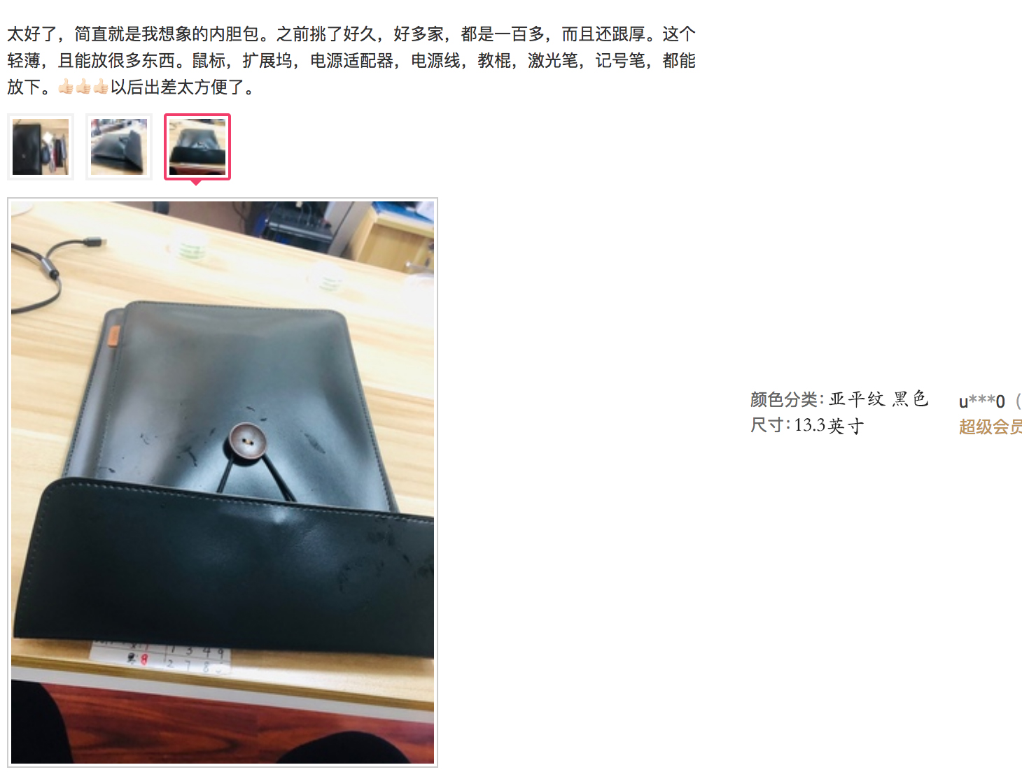 純手,工做,小眾產品用料好一點,也沒有什么利潤!( 內膽包有二層,第一層可以放電源 鼠標、小文件等,很實用)