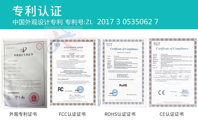 5.電源適配器外殼采用防火PVC材料生產,符合國家安全標準.