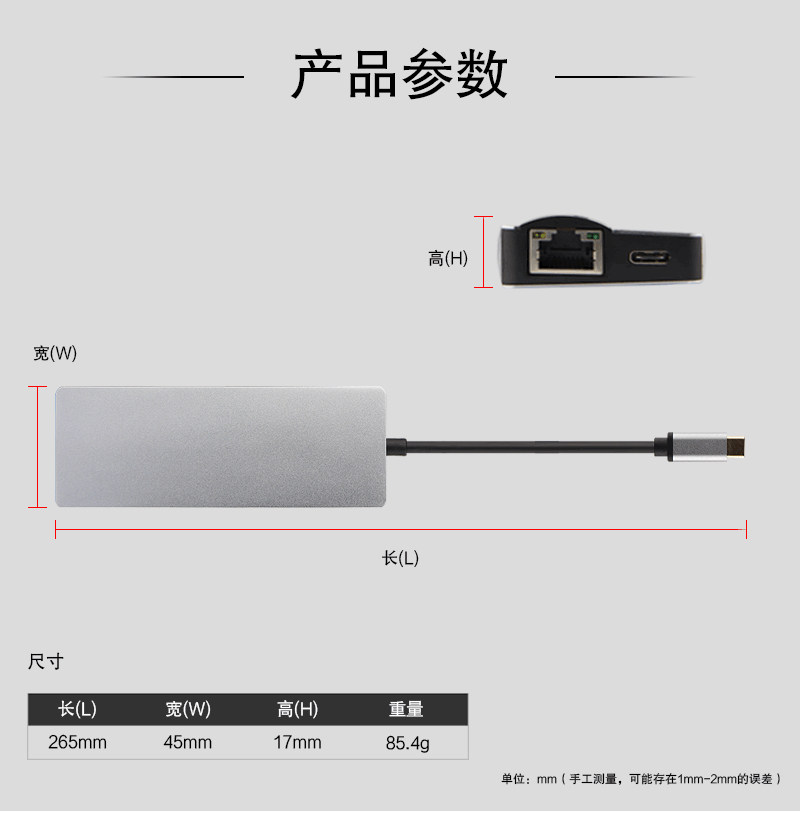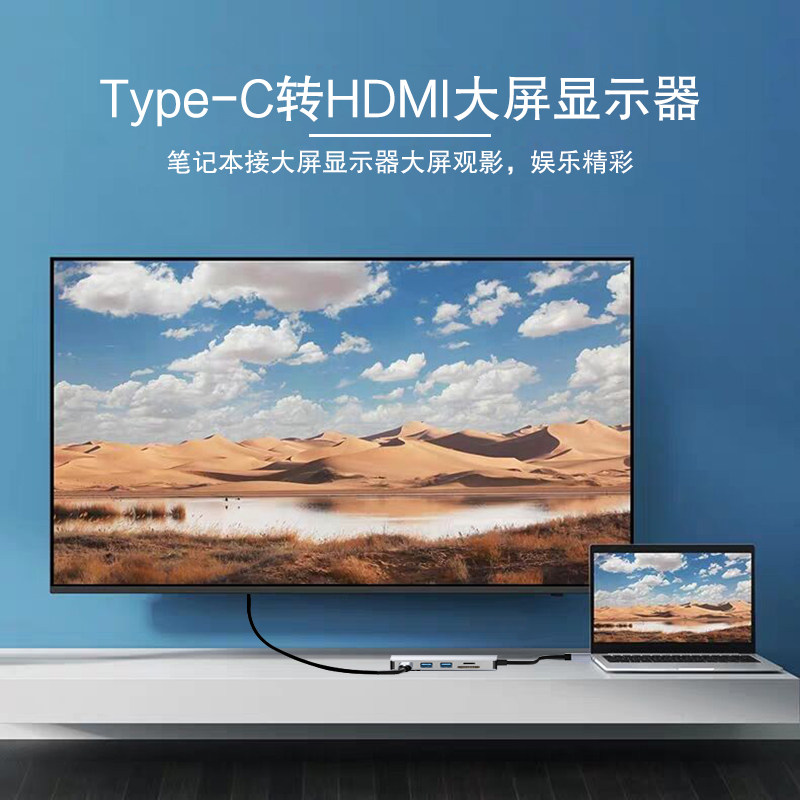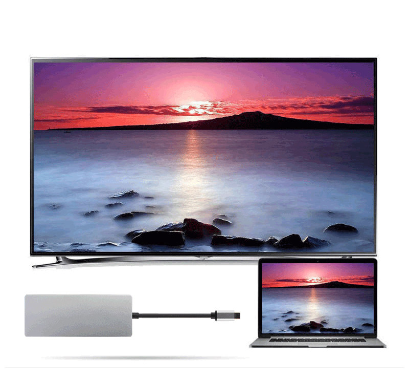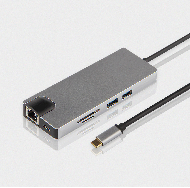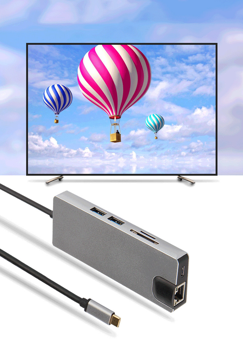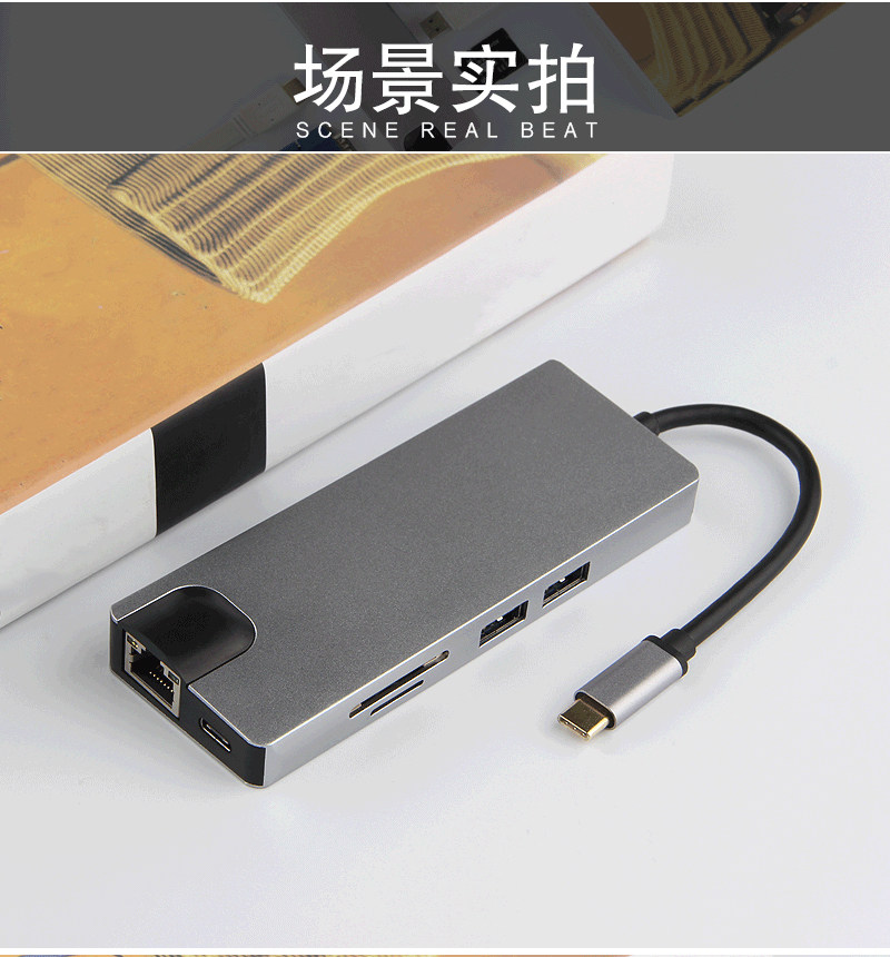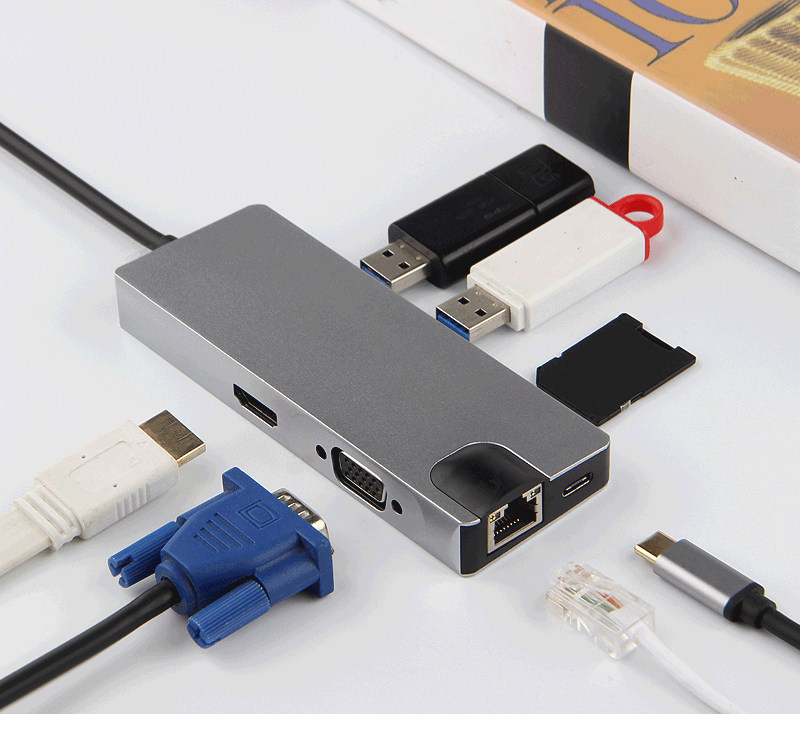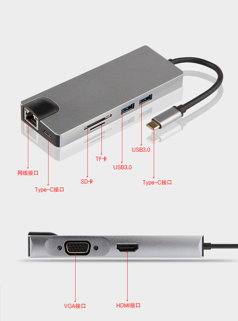 以下為 銀色【Type-c擴展2USB+HDMI+VGA+網口+讀取SD/TF卡】描述圖片