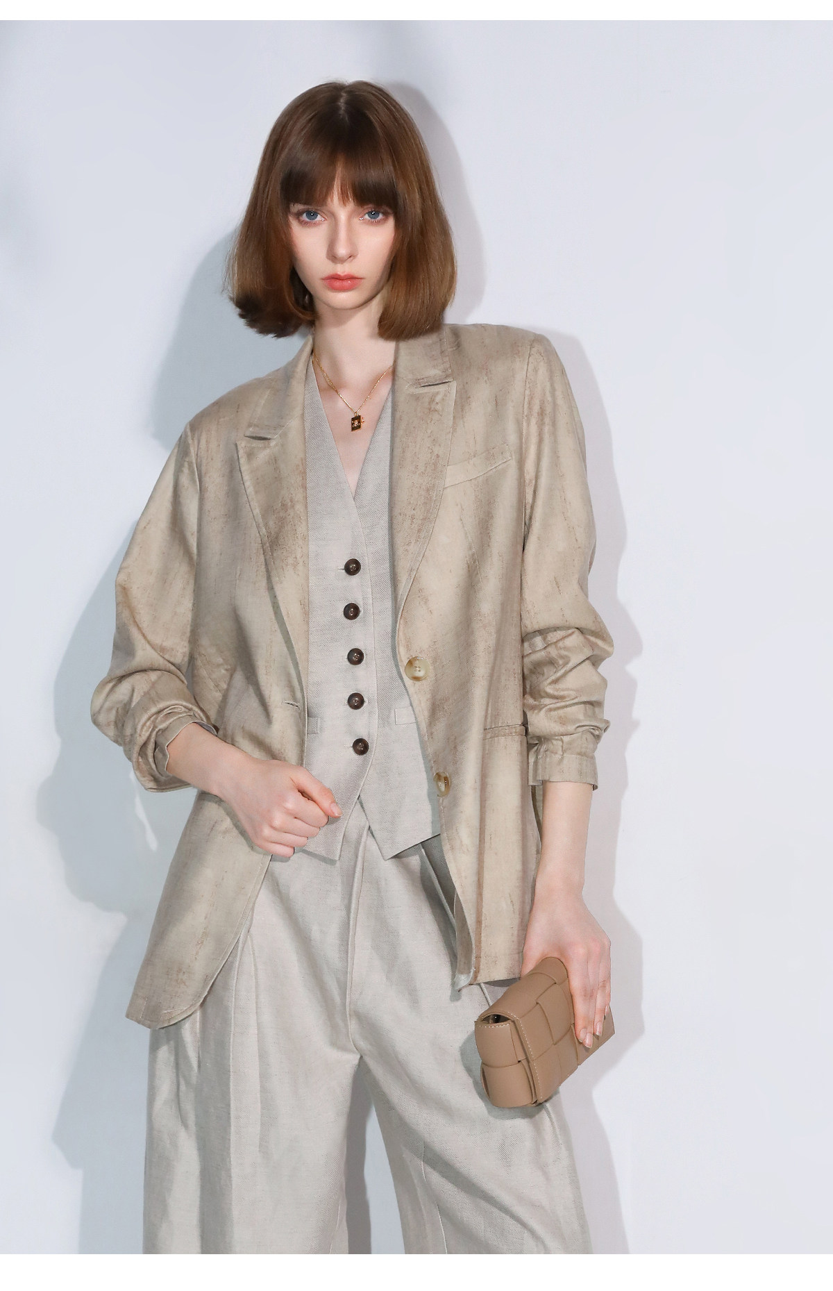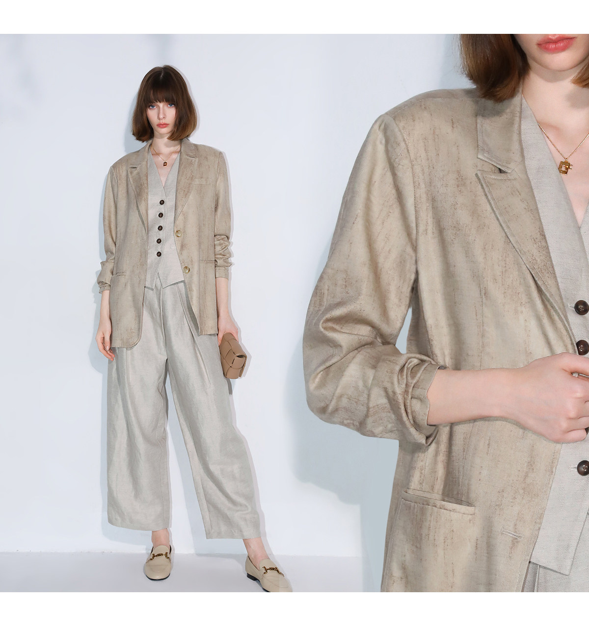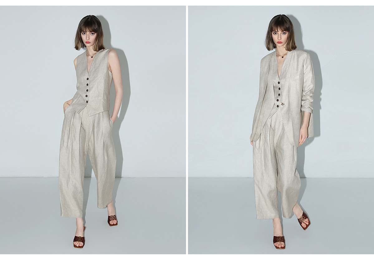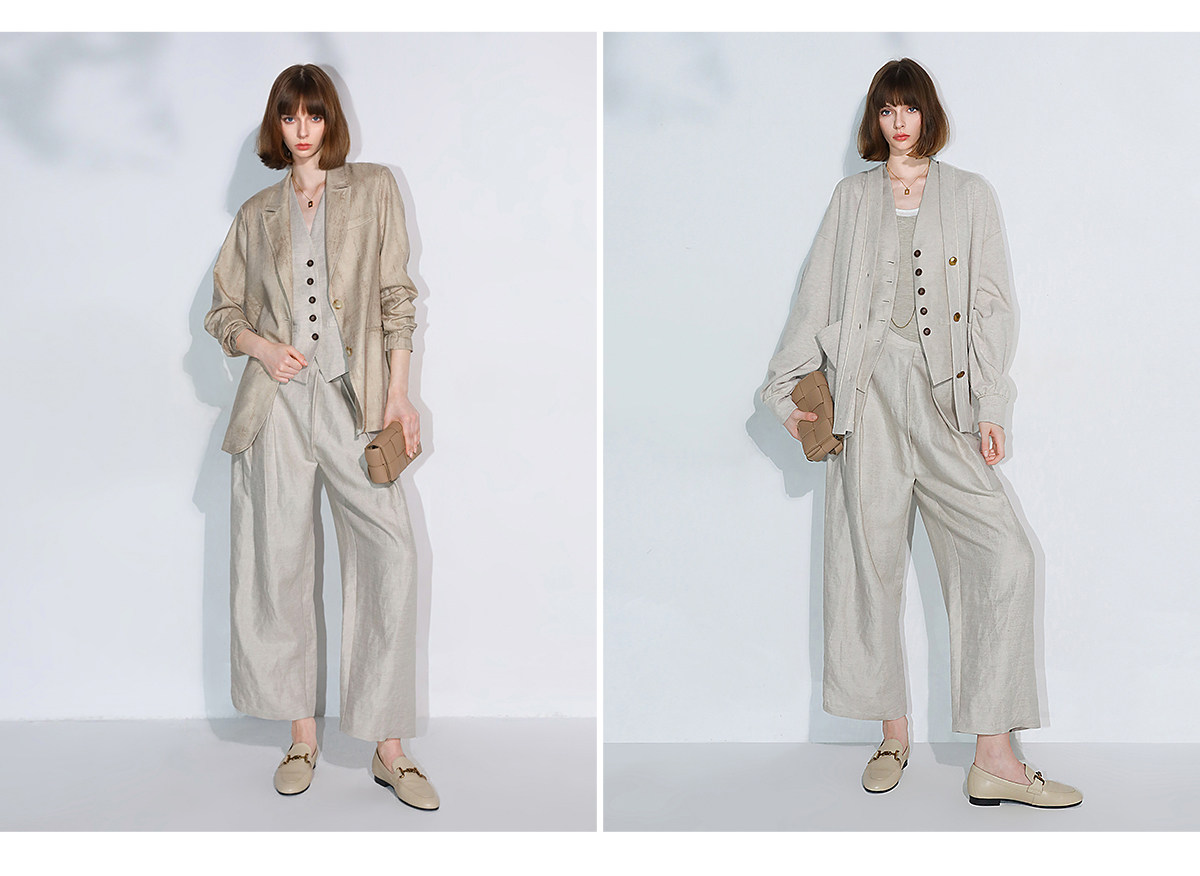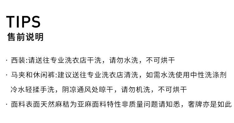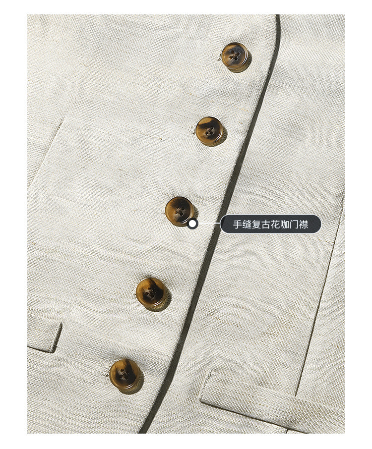 西裝:首批:面料:亞麻50% 粘纖50% 里料:聚酯纖維100%