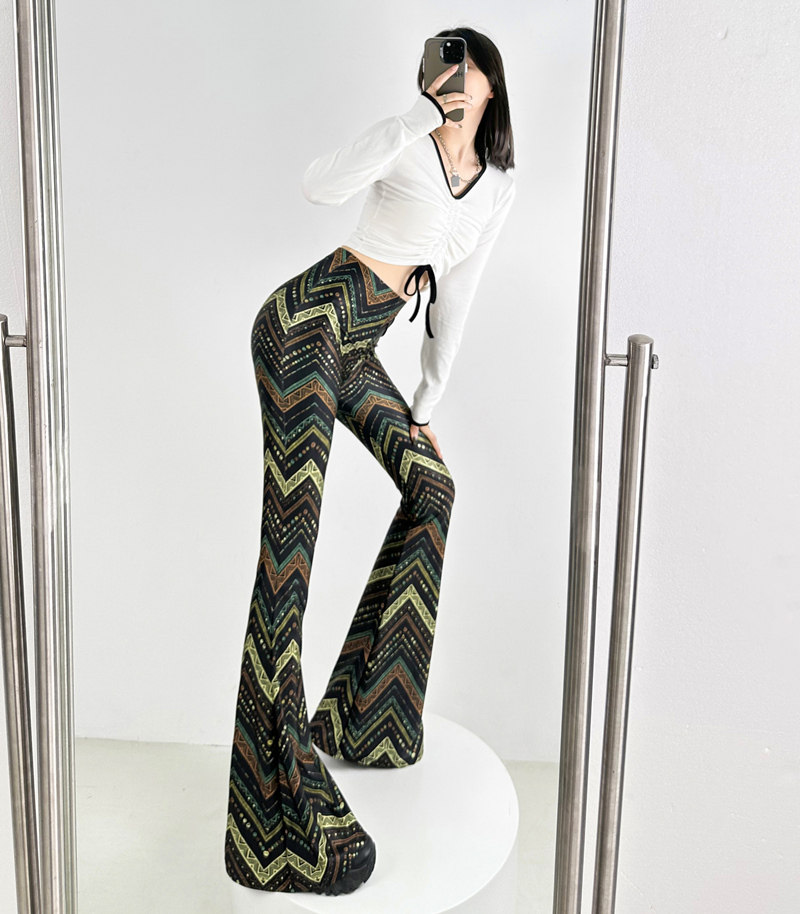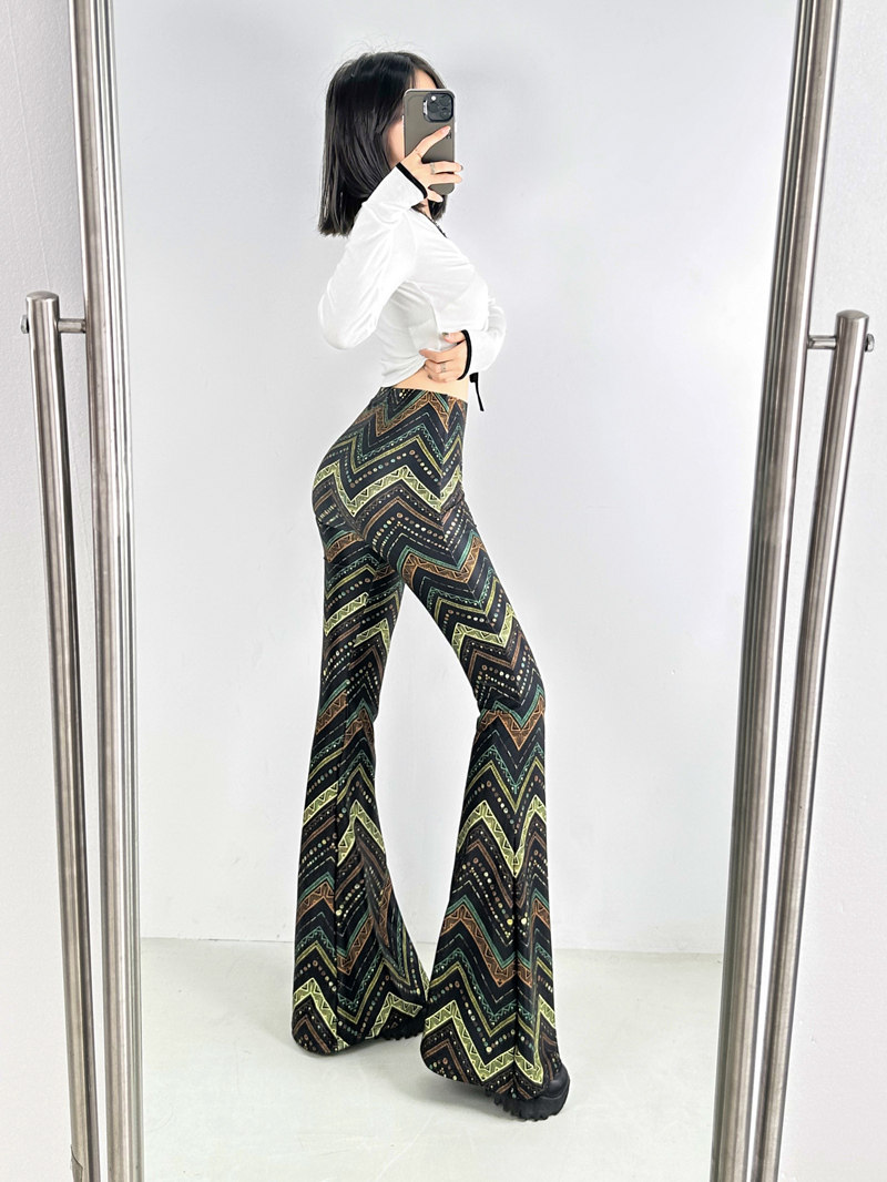 新款原創印花喇叭褲
