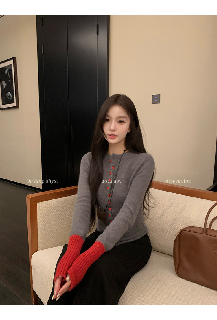 獨家定制撞色紐扣反扣/色波浪形門襟