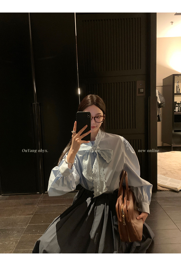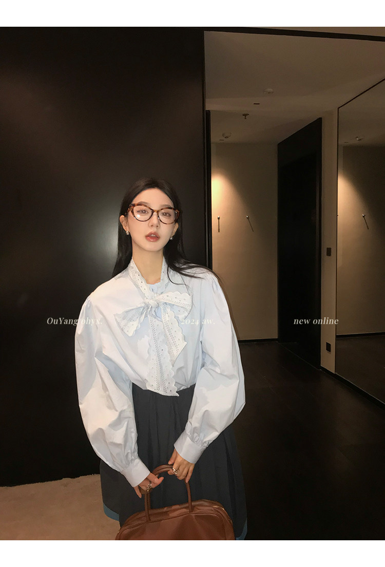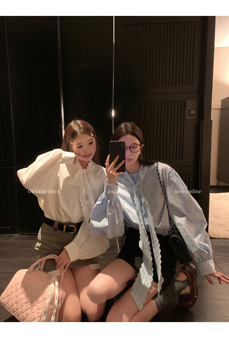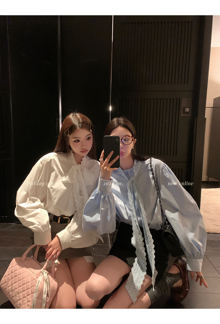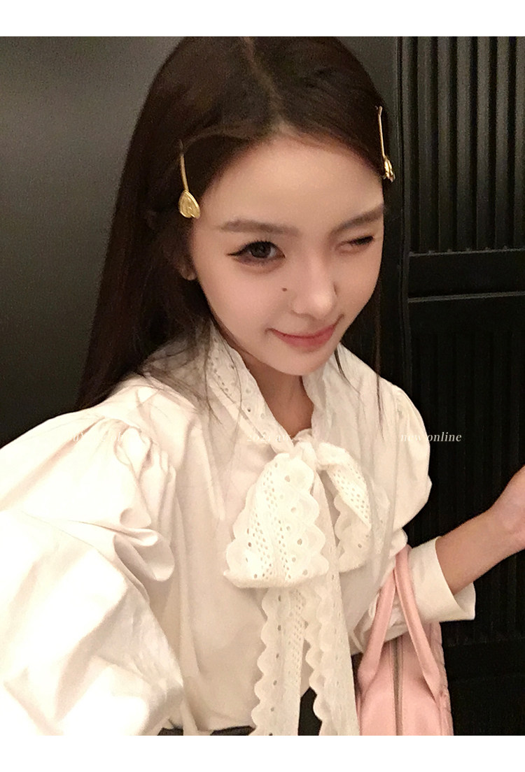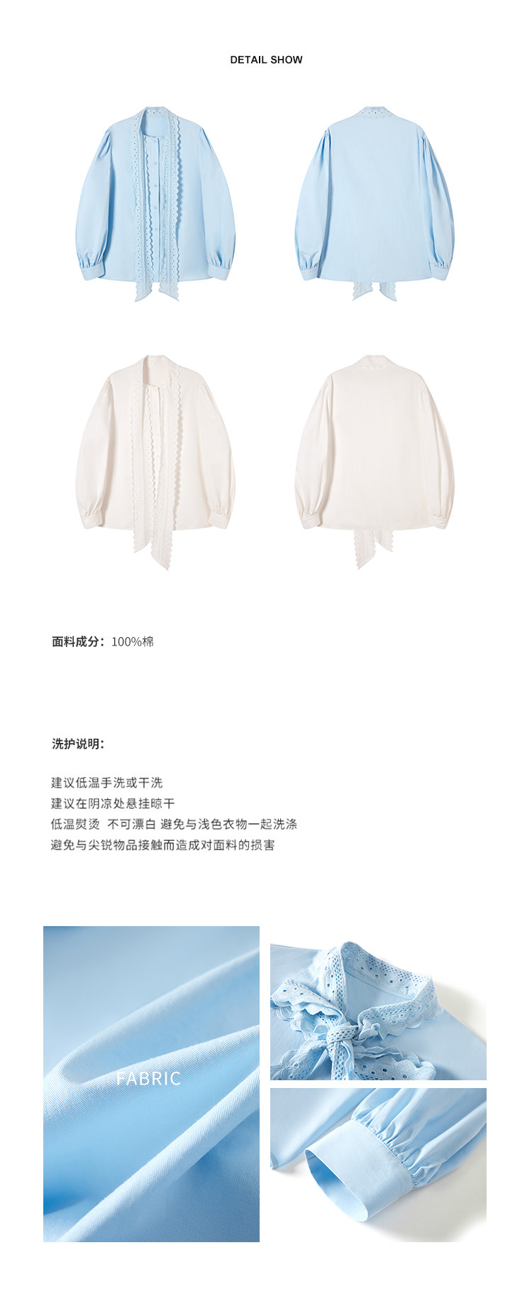 領口菁心設計的唯美的蕾絲花型飄帶 示意著甜美的浪漫