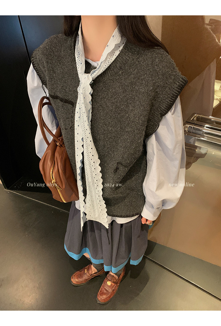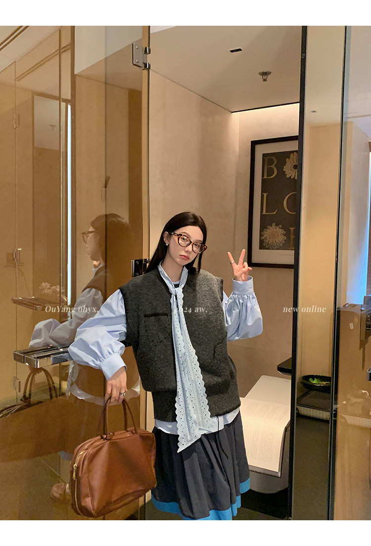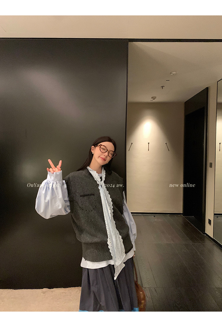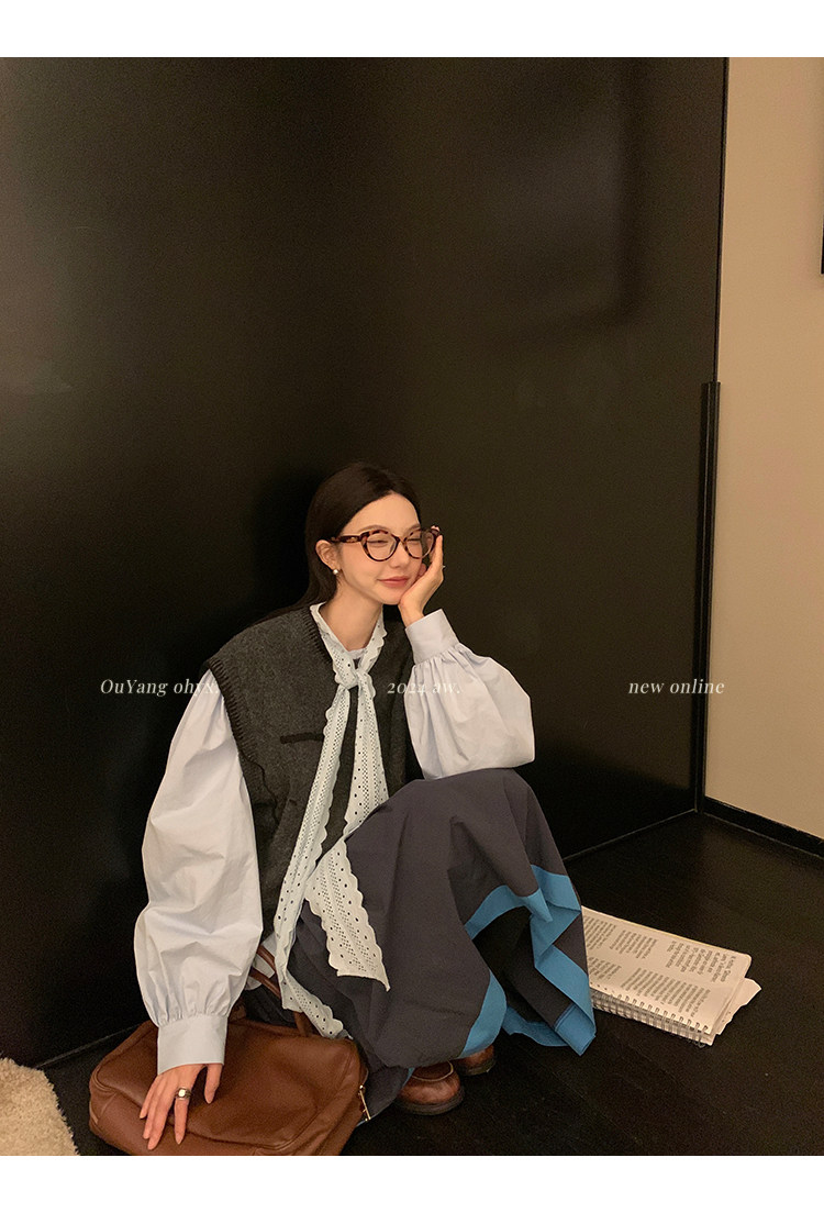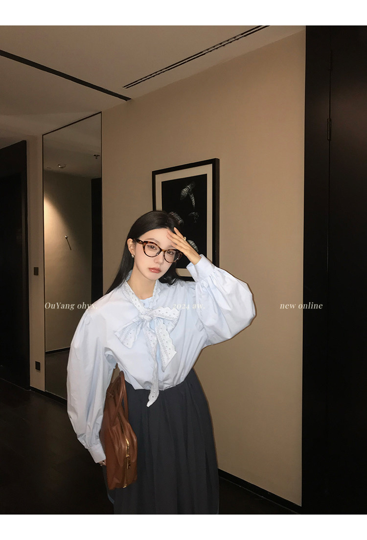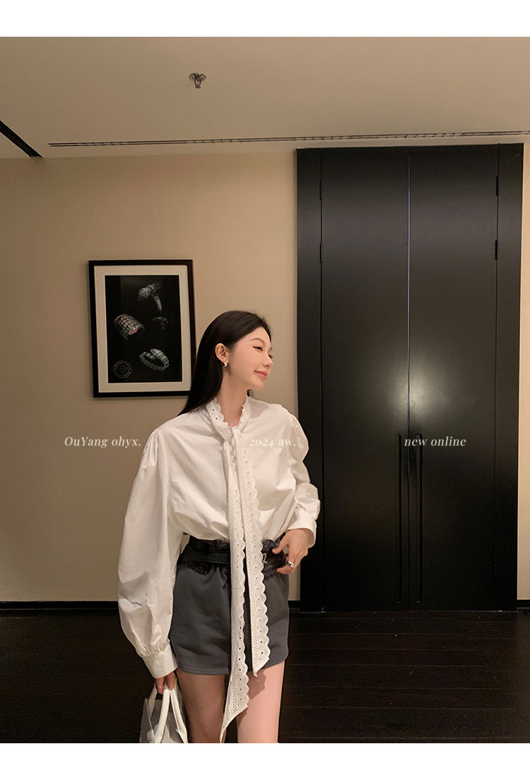 領口菁心設計的唯美的蕾絲花型飄帶 示意著甜美的浪漫