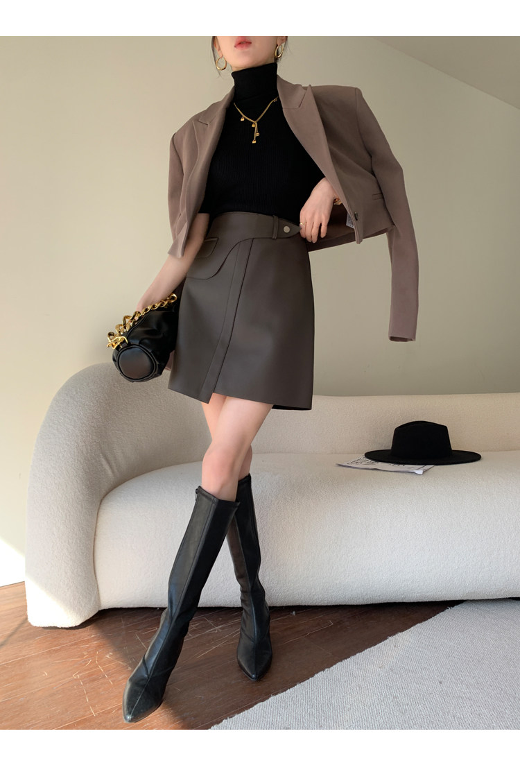 作為本期的搭配wang的微A字版皮裙