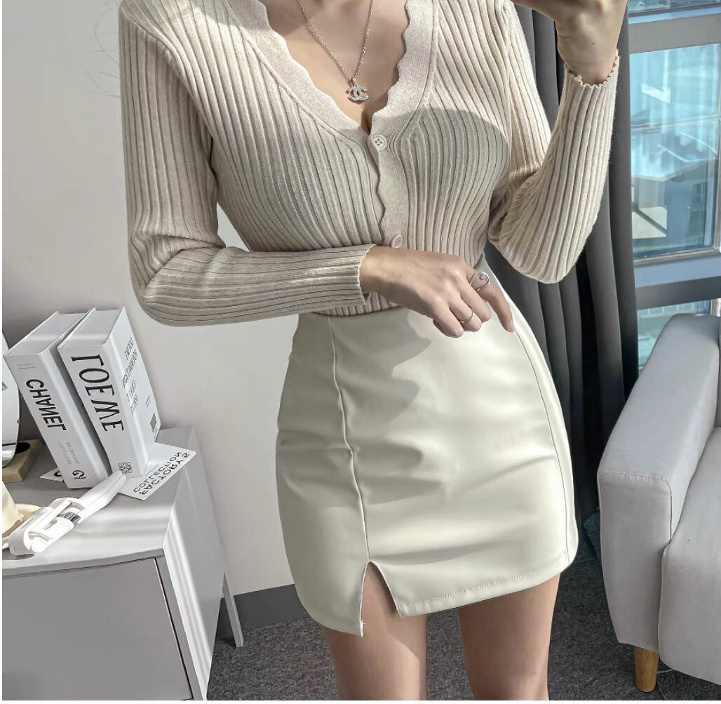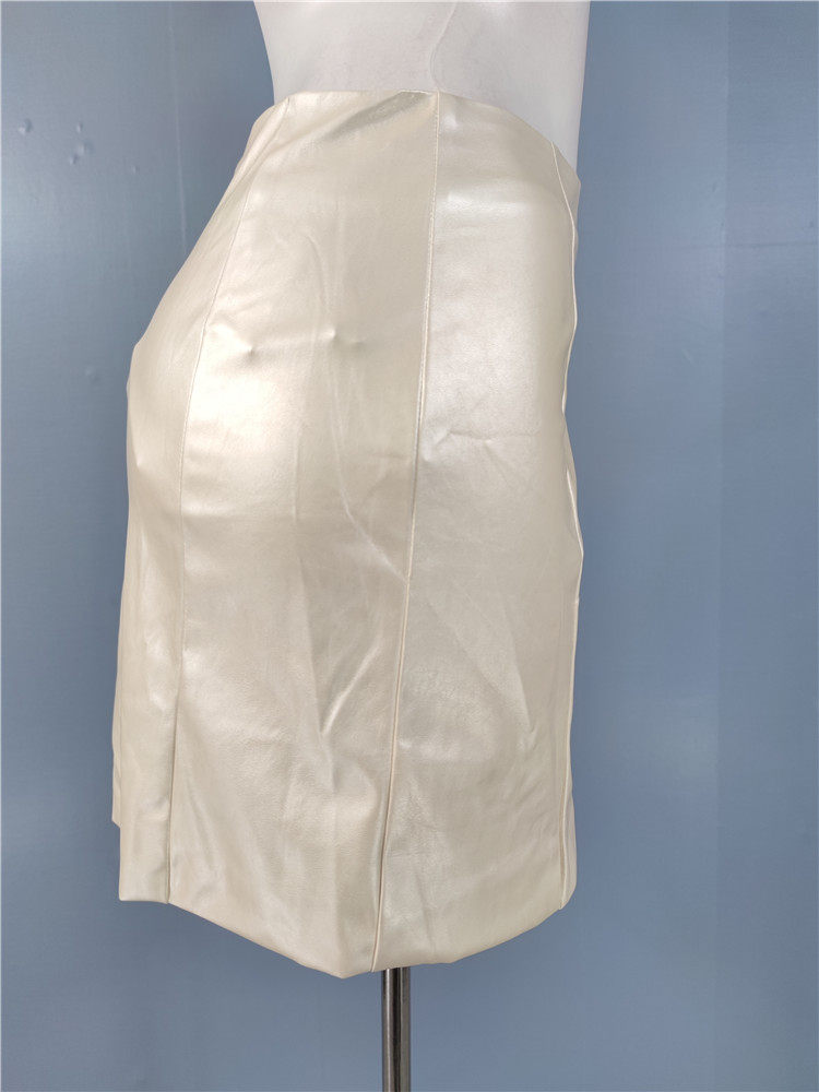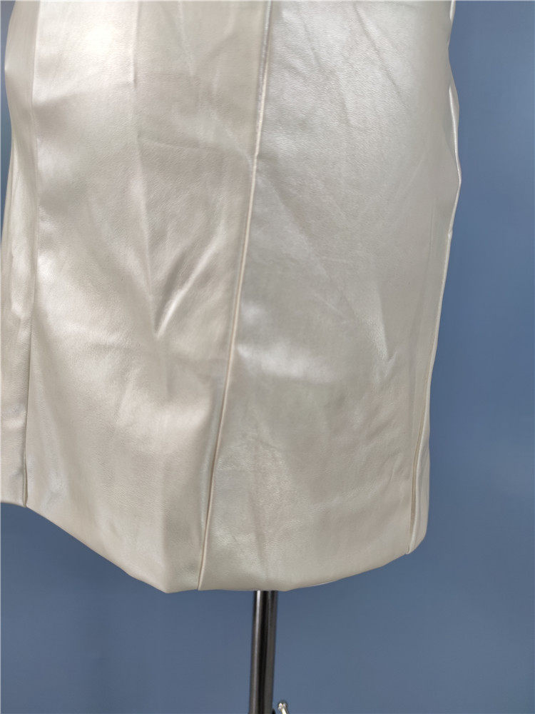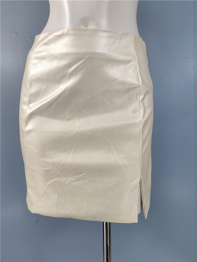 包臀小皮裙女秋冬2023新款銀色高腰半身裙緊身性感開叉PU短裙下裙