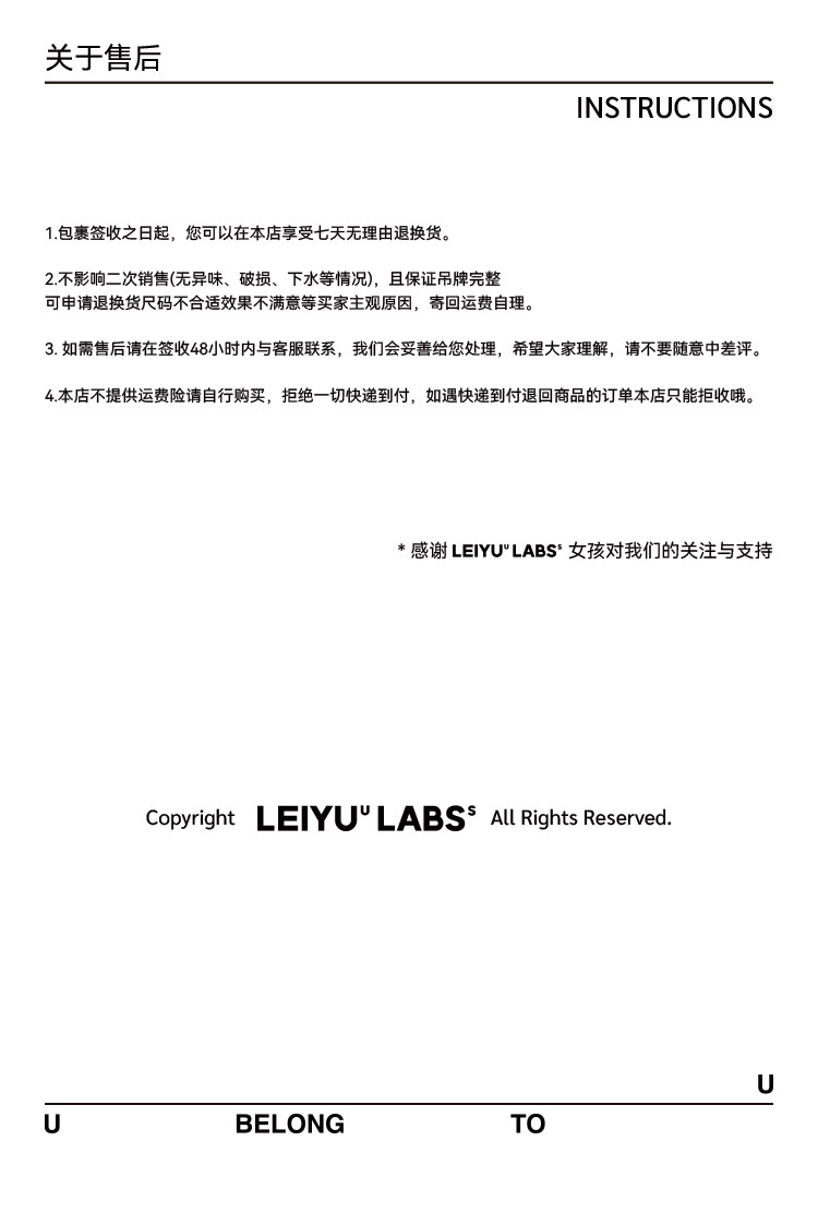 因商品為海外寄送,若拒收包裹,包裹將會退回海關並被銷毀,且訂單款項不會退款。請務必在下單前確認收件地址及商品內容無誤。 - 非瑕疵商品退貨手續費