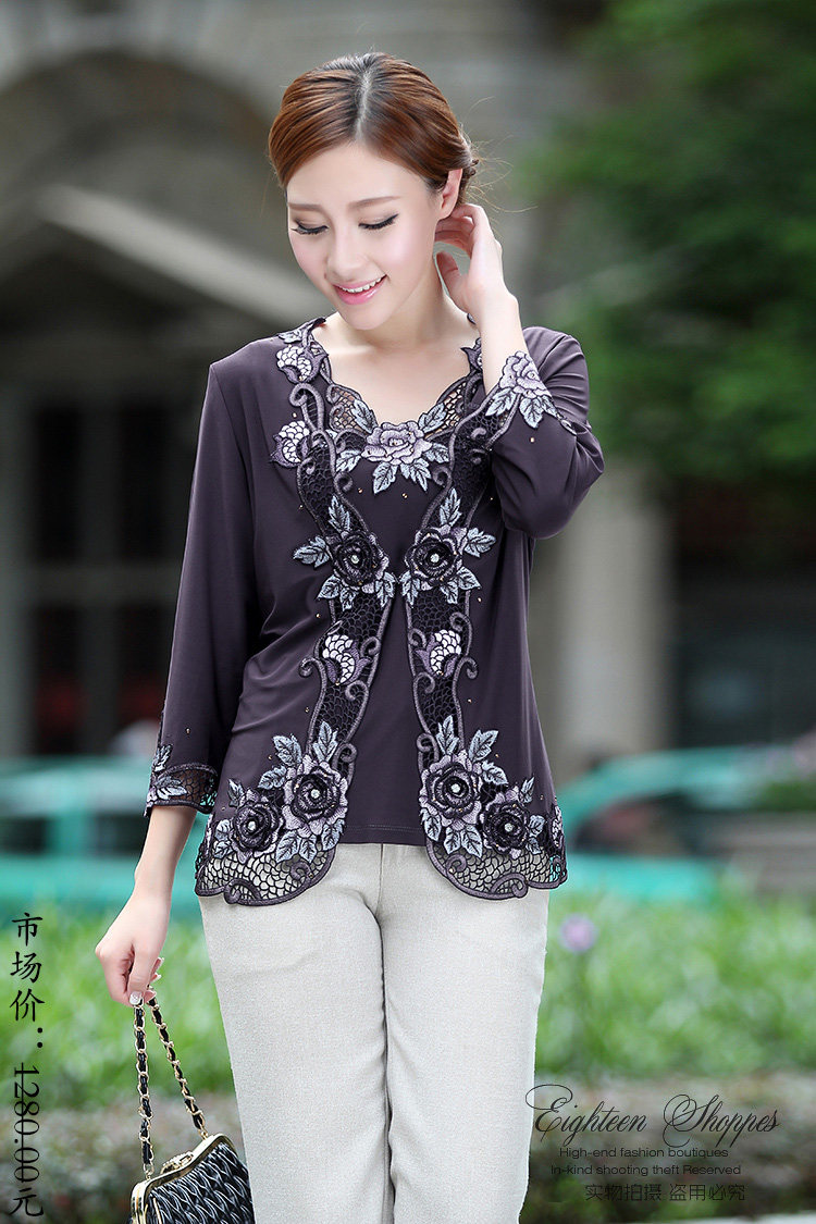 領口重工刺繡花加上那閃閃發光的手工釘鉆和燙石設計,添加了不少質感民族風時尚經典的V領,更加彰顯媽媽與眾不同的美麗。