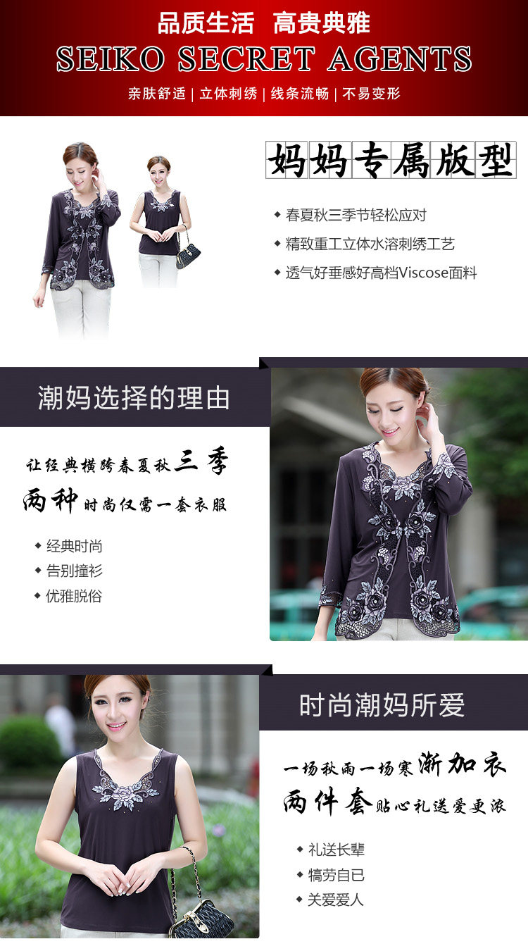 領口鏤空刺繡花設計增添了幾分小性感!但又不失媽媽的高貴優雅氣質!