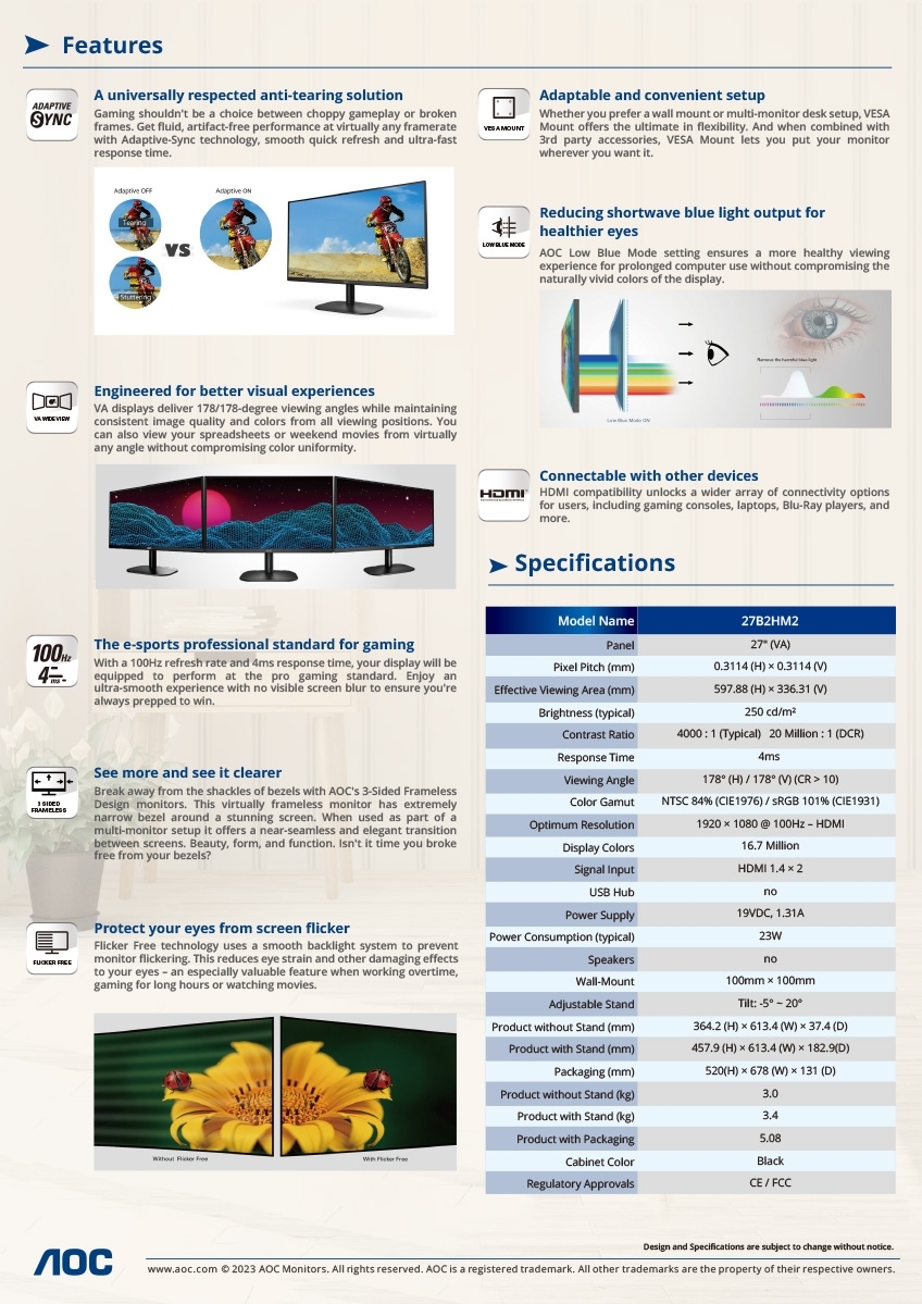 特色:低藍光模式及不閃頻技術