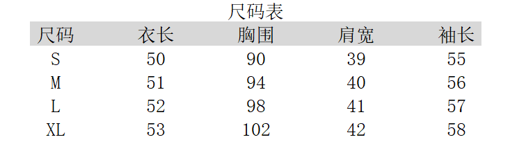 S碼 衣長50 胸圍92 肩寬39 袖55
