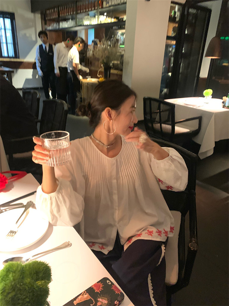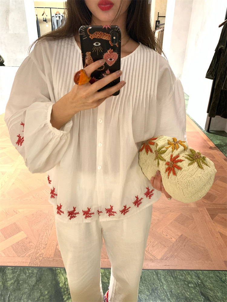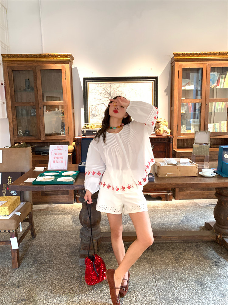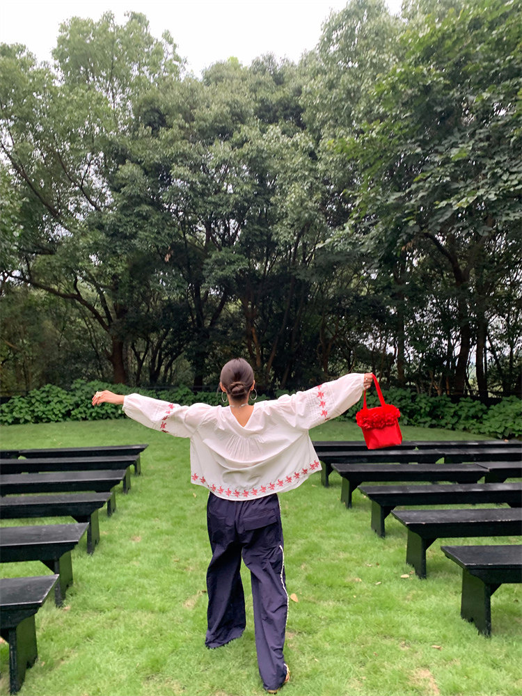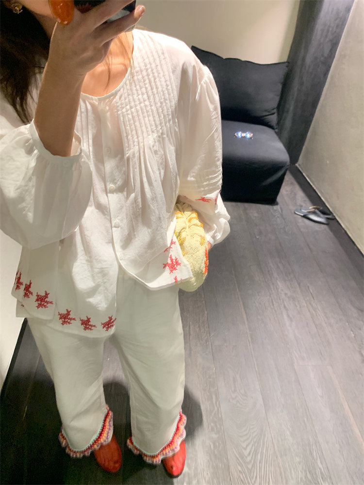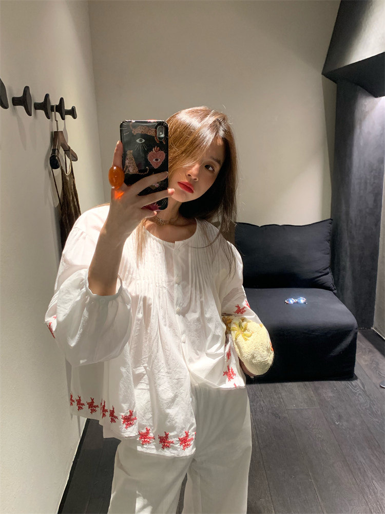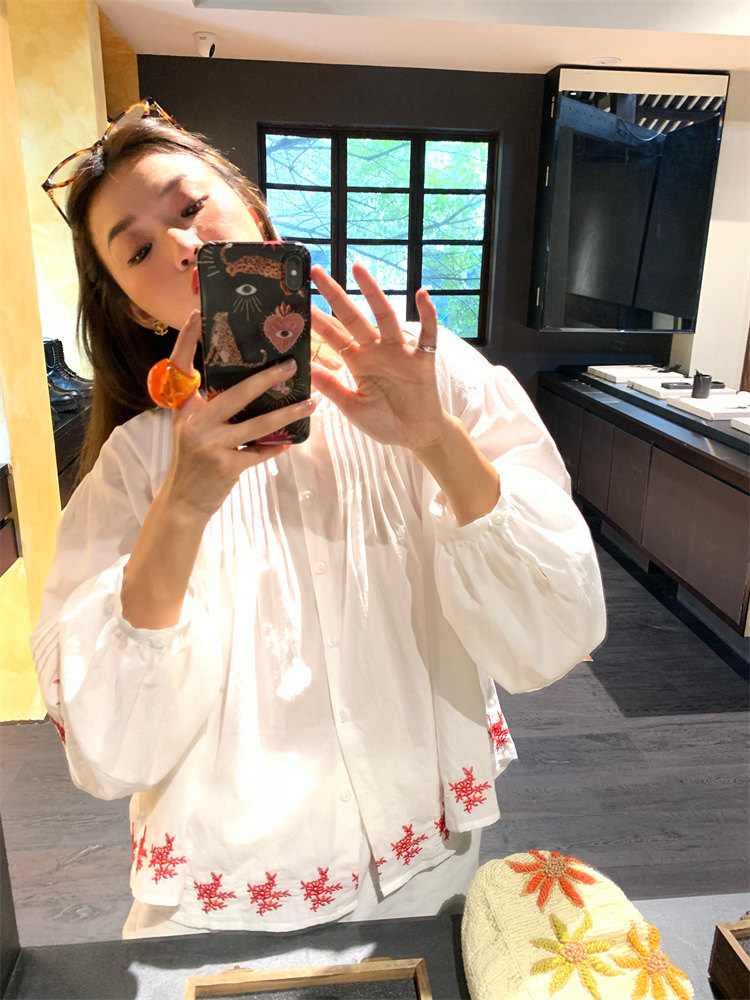 重工藝刺繡的襯衫來啦,hen喜歡這種精zhi又帶小女人味兒的上衣!