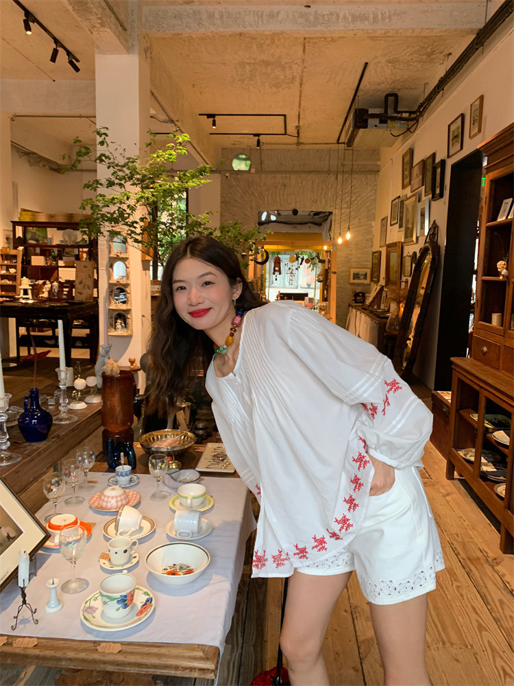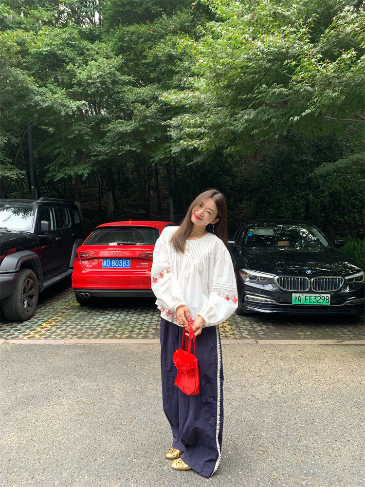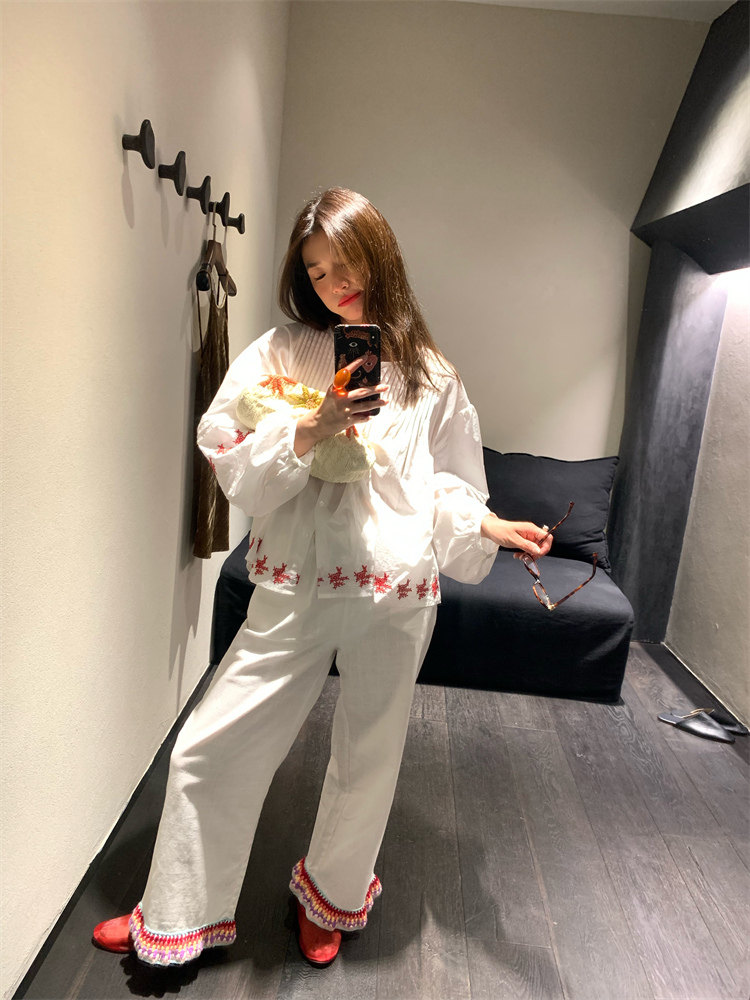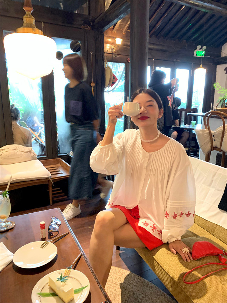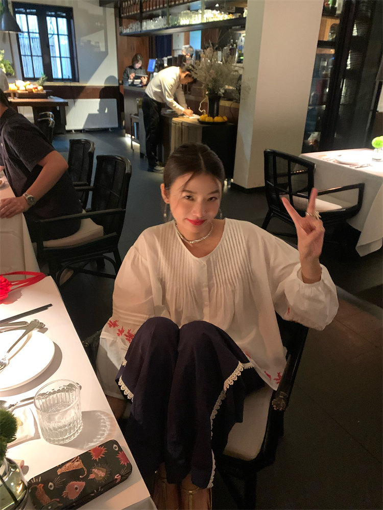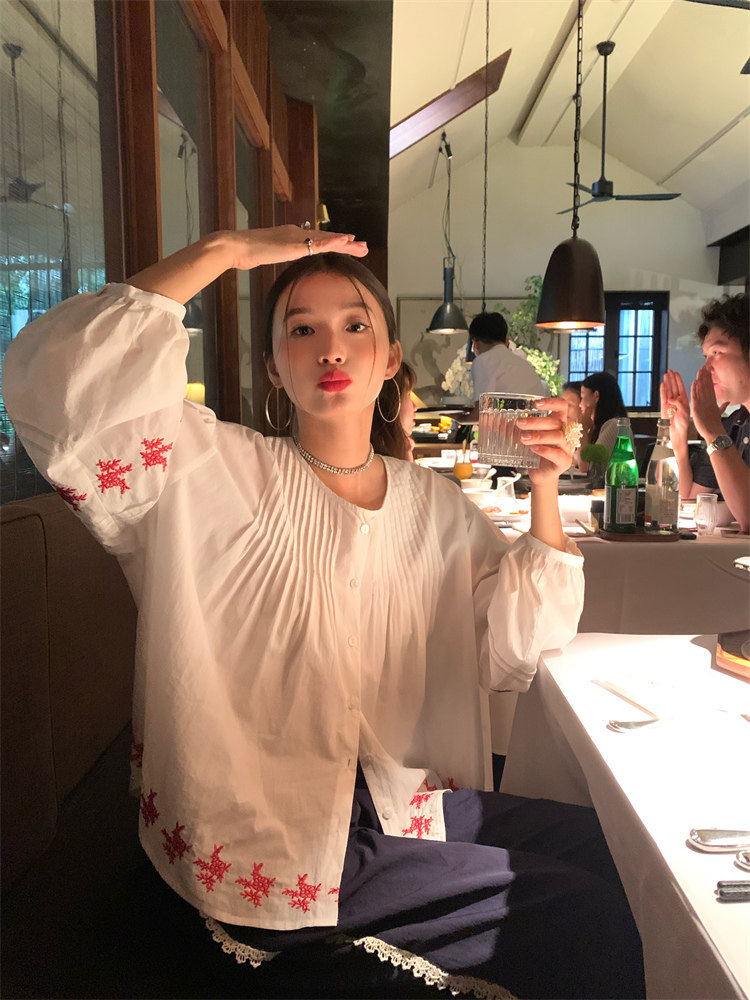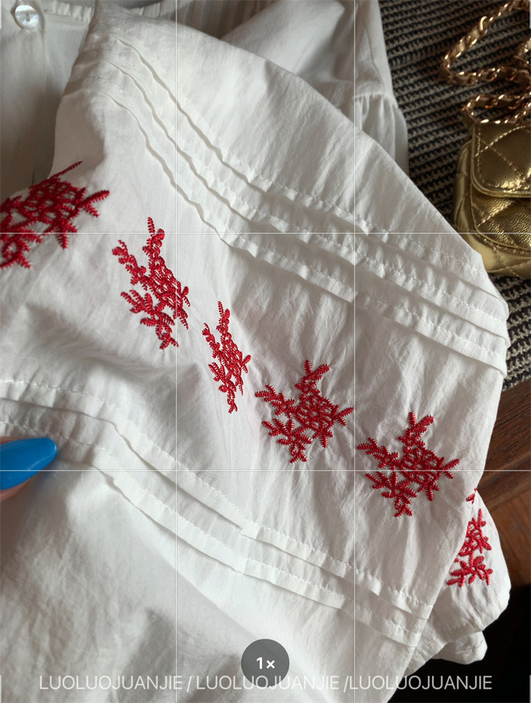 重工藝刺繡的襯衫來啦,hen喜歡這種精zhi又帶小女人味兒的上衣!