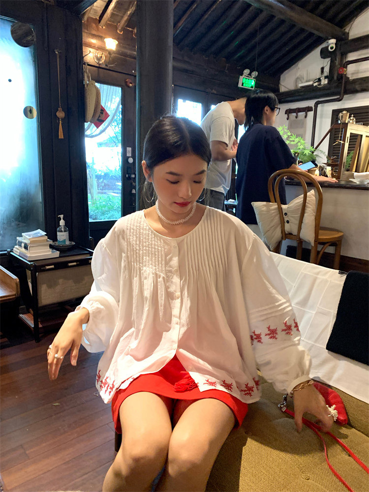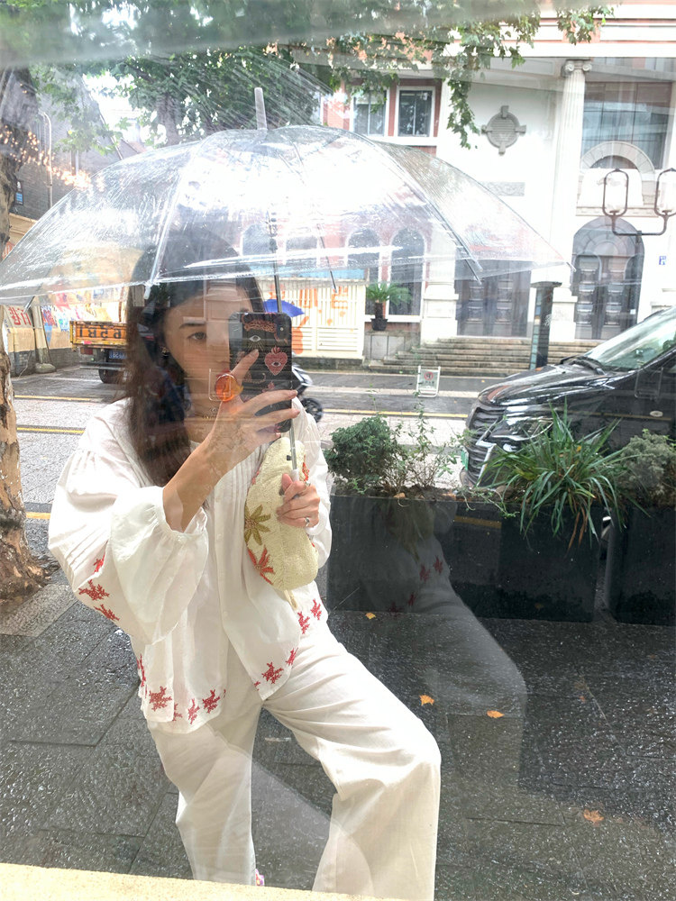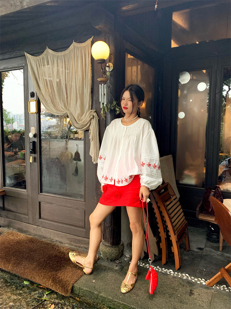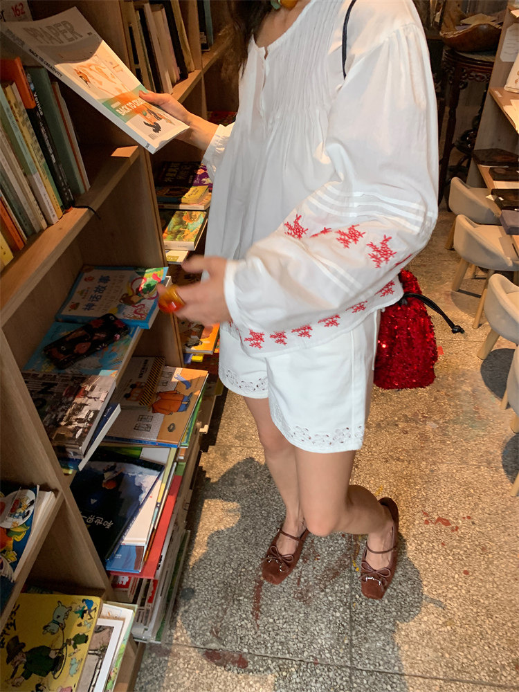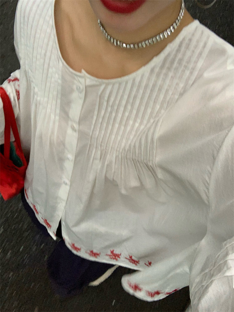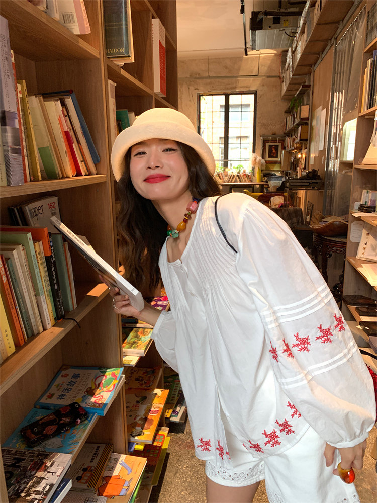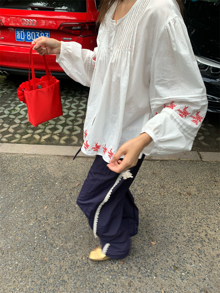 重工藝刺繡的襯衫來啦,hen喜歡這種精zhi又帶小女人味兒的上衣!
