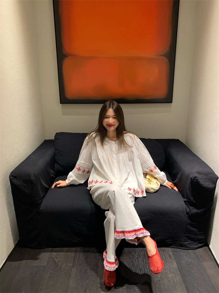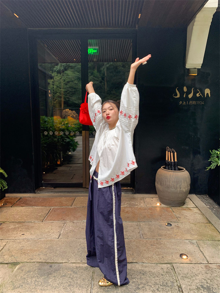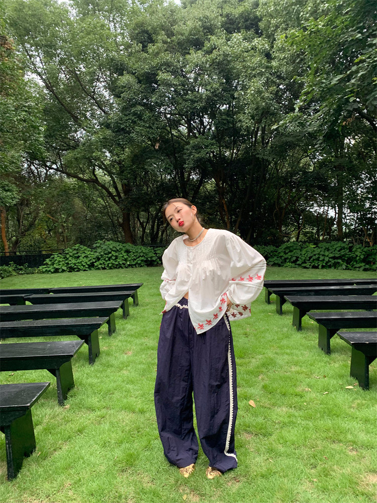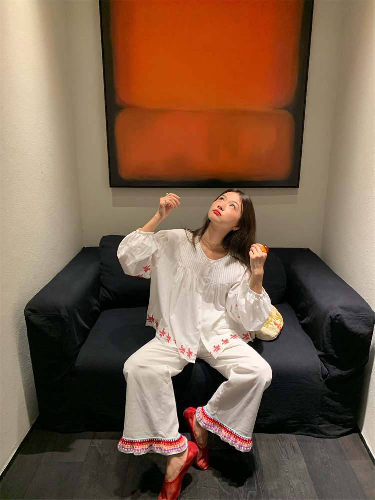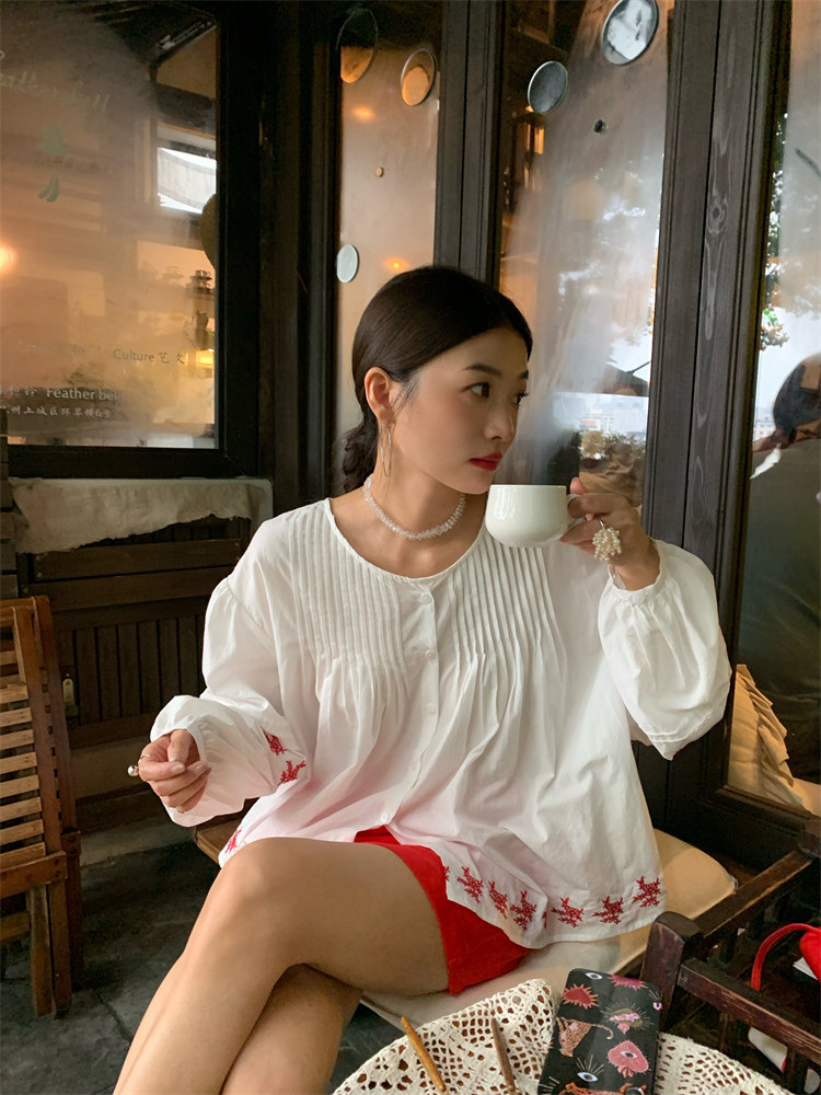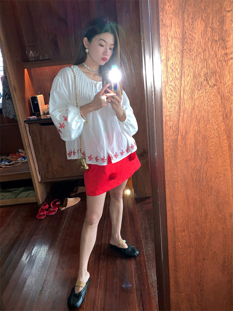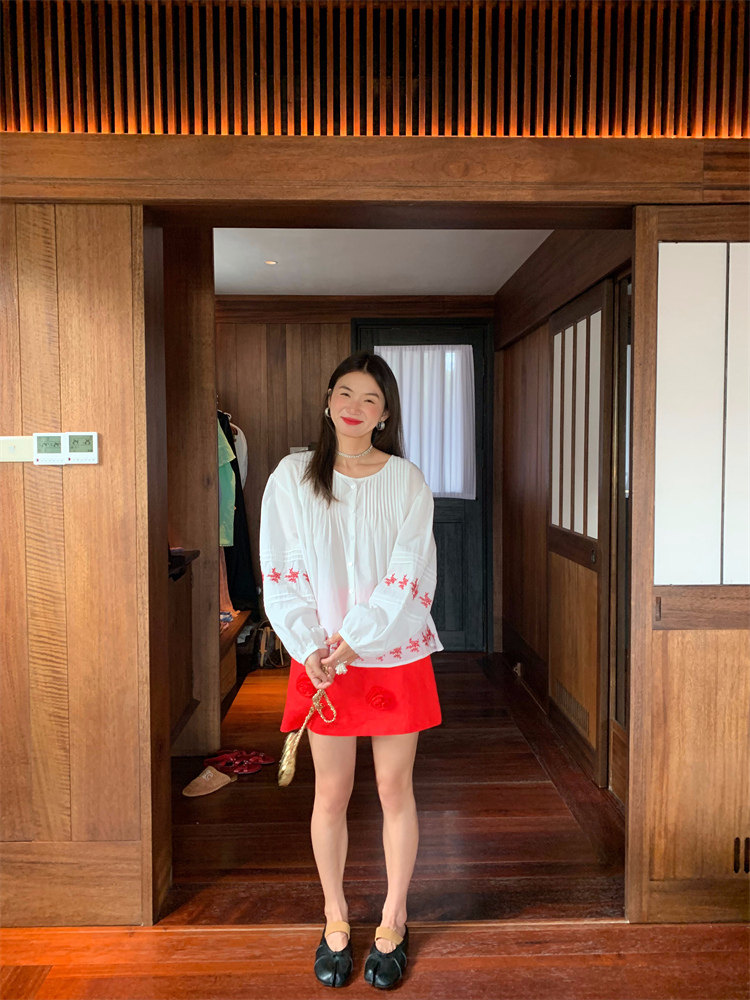 重工藝刺繡的襯衫來啦,hen喜歡這種精zhi又帶小女人味兒的上衣!