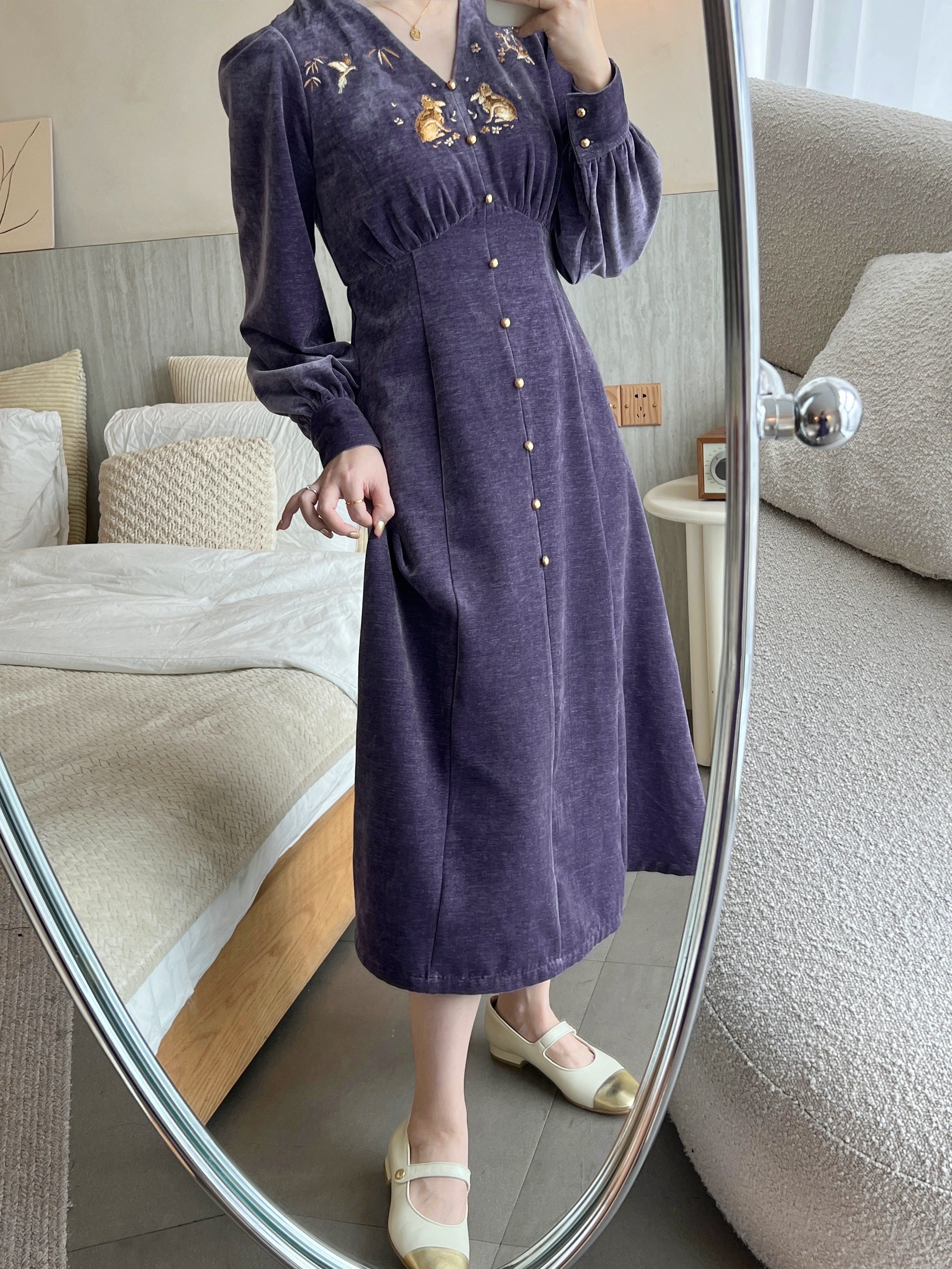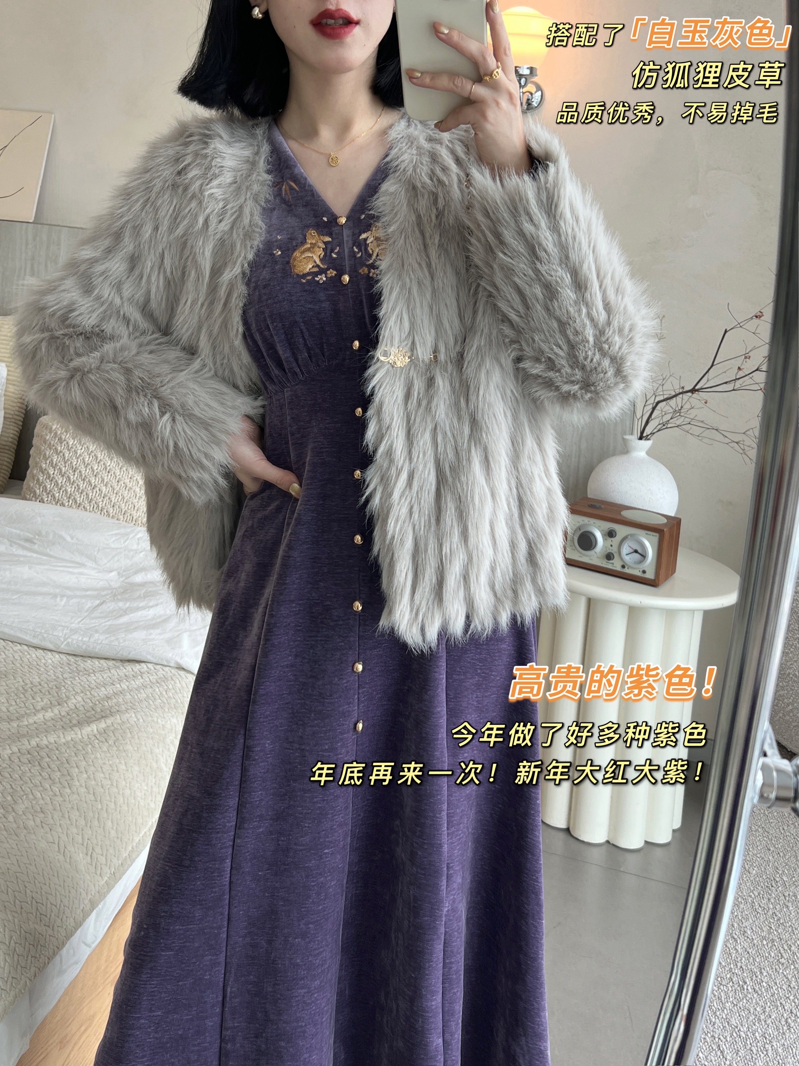紫色帶一點灰度,比前幾次稍濃郁一點兒,貴氣逼人