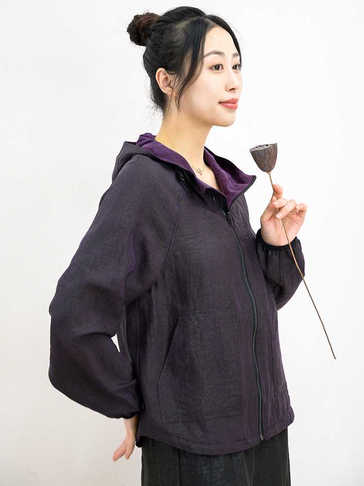 | * 商品名稱: 【日新家】雙面穿龜紋香云紗連帽外套 |