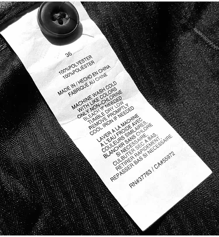 MACHINE WASH WARM WITH LIKE COLORS.溫水機洗,顏色相近才可混洗