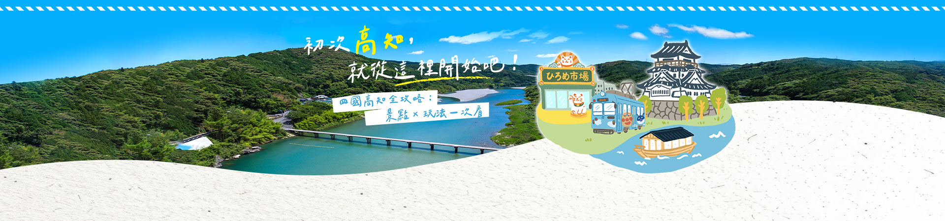 | 【第3天】 ★奇蹟的清流〈仁淀川屋形船遊船〉→ ★ 土佐和紙DIY體驗 →★保留完整「天守」與「本丸」〈高知城〉→美食祭典〈弘人市場〉 |
